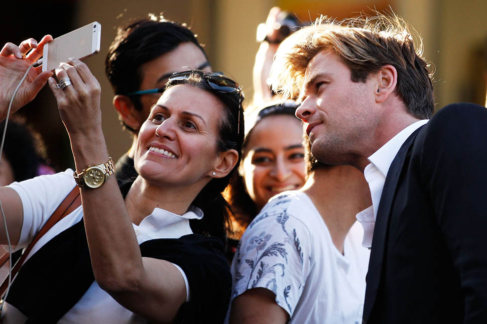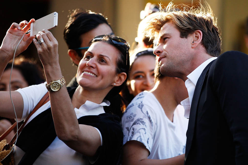 Chris Hemsworth is in Sydney today promoting In The Heart Of The Sea. Today happens to be the final day of his reign as PEOPLE’s Sexiest Man Alive. He’s on stage, making his final walk, waving while he tells the audience in voiceover how he’s tried to achieve world peace over the last 12 months.