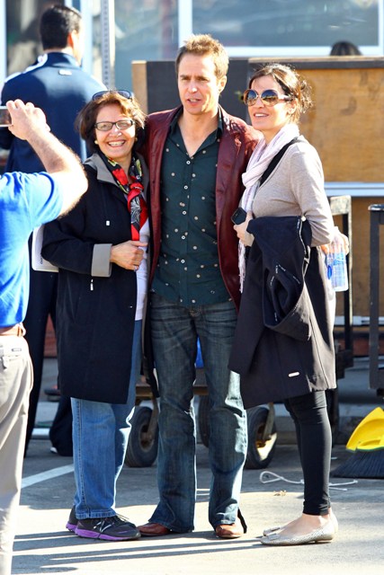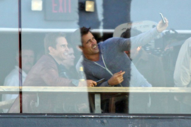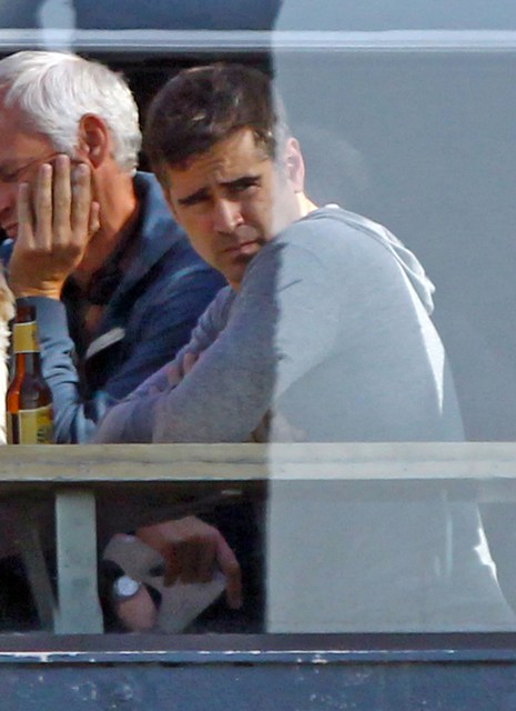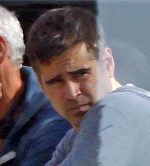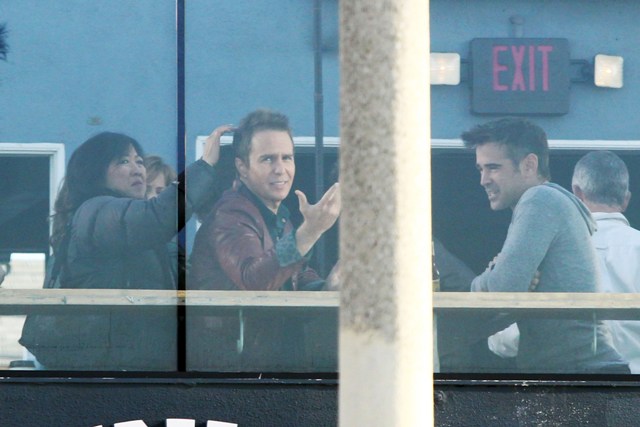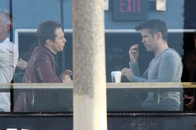 Colin Farrell and Sam Rockwell were photographed together yesterday on the set of Seven Psychopaths. (My Blackberry is underlining the spelling of the word Psychopaths like it's wrong in plural. Is that true? Am writing in a cab and am too rushed to google.)
