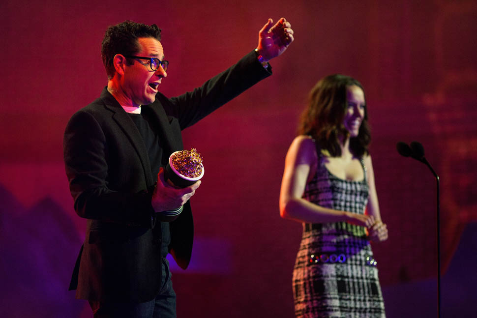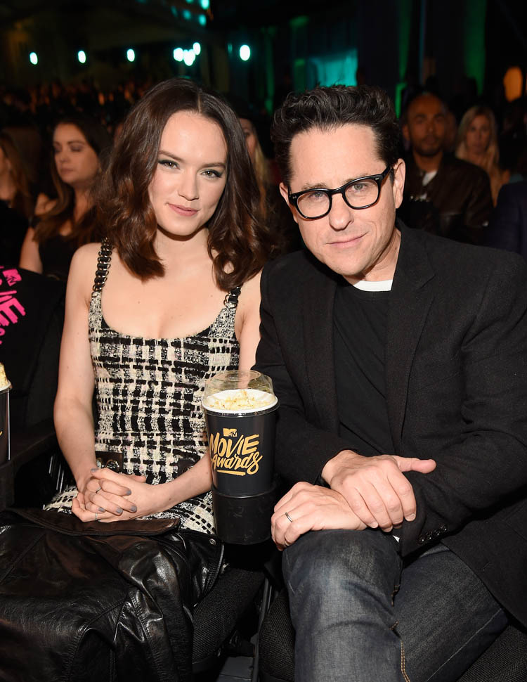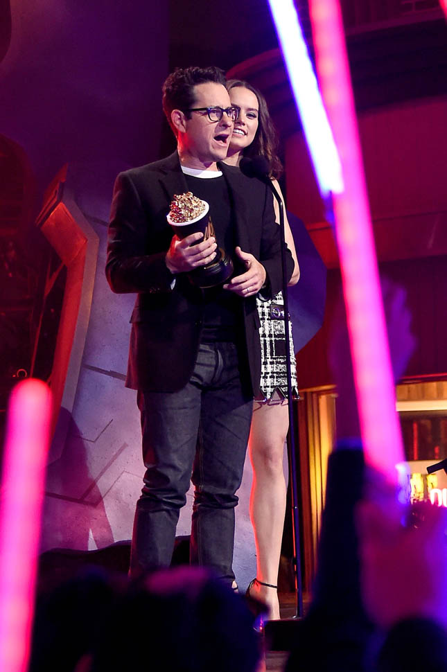 Star Wars: The Force Awakens won Best Movie of 2015 + Deadpool at the MTV Movie Awards last night, which is unsurprising. It’s a popularity contest and that was the biggest movie last year. JJ Abrams and Daisy Ridley, taking a break from shooting Episode VIII, were on hand to collect their golden popcorn. The double standard of dress at this event drives me nuts. A well-dressed dude at the MTV Movie Awards is in jeans and a jacket, while the women turn up in dresses and heels, or whatever the f*ck Halsey was wearing. You get my drift—dudes just have to look like they brushed their teeth, the ladies have to wear proper outfits.