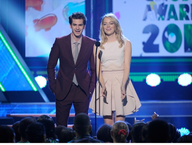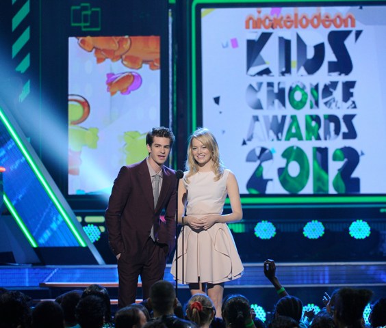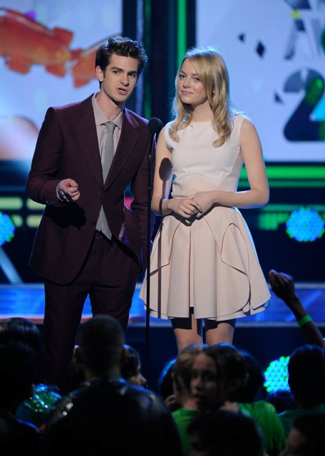 I was happy to see Emma Stone and Andrew Garfield walking their first red carpet together on Saturday at the Kids’ Choice Awards. The two subsequently presented together as promotion for their upcoming Spider-Man.