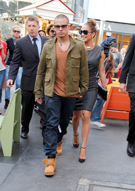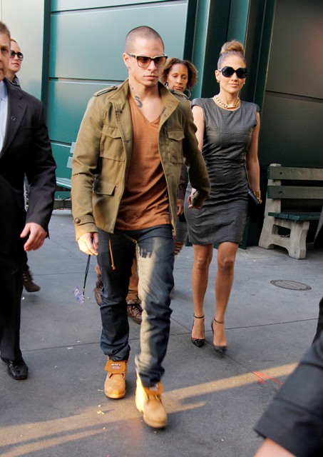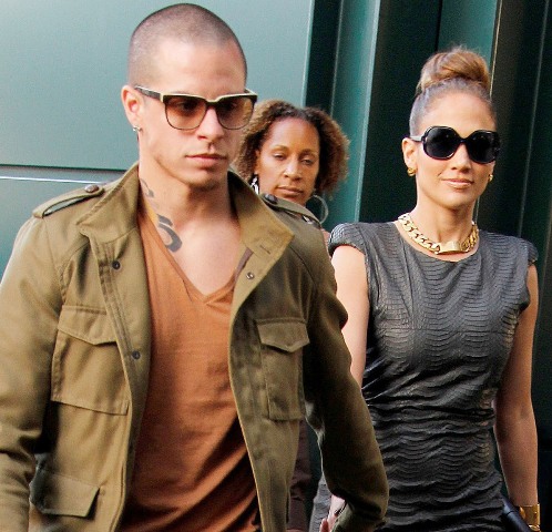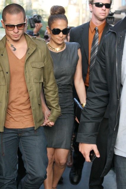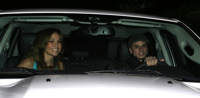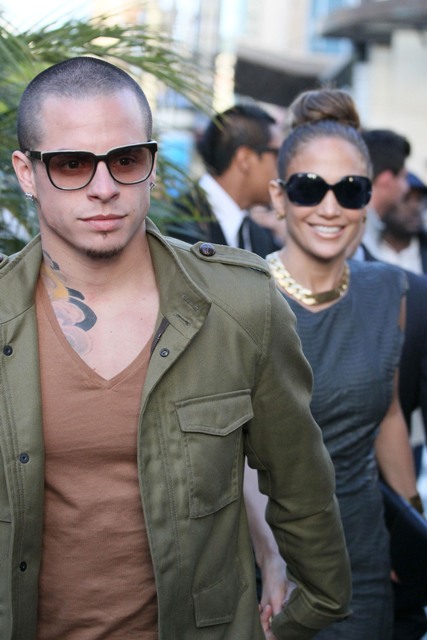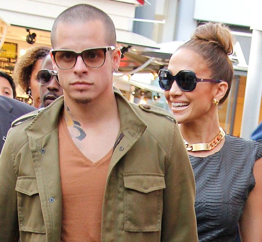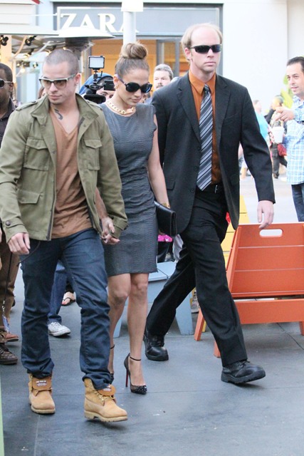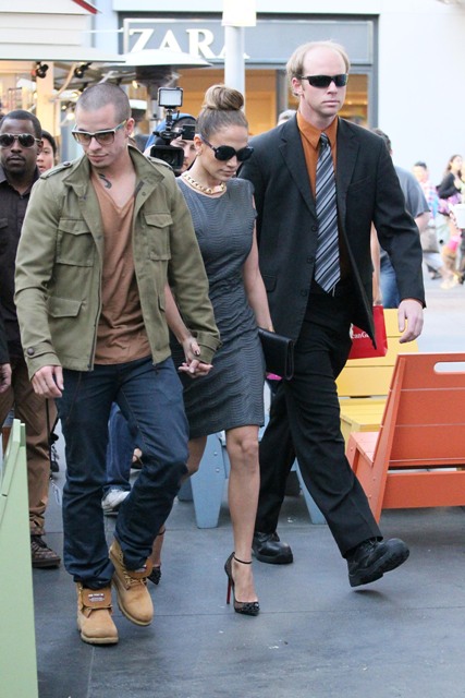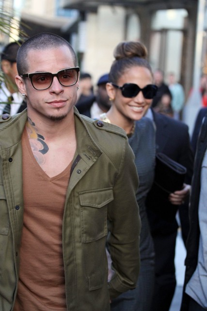 Here she is, Jennifer Lopez, taking her “Beau” (I dunno, I guess that’s his other name because he tweets about him like that) out for his birthday dinner the other night. A few days before that, she let him lead her by the hand around the Grove as they attended some store opening. And then there’s the new video. Have you seen the new video? It’s the video for Dance Again which may as well be called Let’s Celebrate Our Slum Loving because the slum lover Casper Smart is very heavily featured...with his mouth open the entire time.