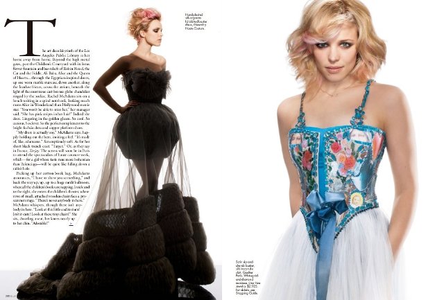 "I hadn"t been that impressed with someone since I worked with Meryl Streep"- Diane Keaton on Rachel McAdams, in the pages of the new Elle showcasing Rachel in several couture creations criticised on the Oscar red carpet. Note the cover - remember Beyonce? Armani Prive? I still don"t like the dress but on Rachel, it"s hella more palatable, maybe because she"s not rockin" a ghetto weave and showing off her pits. Same goes for Kiki"s Chanel, a number that looked much better on the runway and much better here on McAdams. So does she really deserve the Meryl comparison? Much as I love her, it"s probably a bit too soon. But the thing is, in sharp contrast to many of her contemporaries, Rachel McAdams is actually working for the work, and not working for the perks, and if famewhoring is a black mark against any young actress claiming to be just an actress, Rachel is certainly doing her best to leave that off her resume which is actually kinda ironic since she has shied away from trotting out her relationship for tabloid benefit, much to the distress of the lunatic McGoslings who sob into their pillows if 2 or 3 weeks go by without a lovey dovey sighting - though she does throw them a bone in this interview to talk about Ryan"s achievement as an Oscar nominee, and how much he brings to his works… remarks delivered with a smitten glow as interpreted by the journalist. As for whyRachel McAdams is most certainly the anti-Biel – well, has Jessica Biel ever been compared to a Stradivarius? Or had the honour of a full page article written about her in the Wall Street Journal? August 2006 - an examination into the career of Rachel McAdams, dubbed "Hollywood"s New Challenge", as her methodical selection process is driving studio chiefs to frustration but at the same time also earning grudging admiration for the way she is deftly navigating the Hollywood landscape and avoiding the mistakes so many other starlets have made before her. Even Marc Shmuger, chairman of Universal Pictures, admits to courting her professionally, seemingly charmed by the fact that his studio still hasn"t been able to lock her down. Simply put, in high school terms, she is the girl who isn"t EASY. She doesn"t go to every party, she doesn"t make out with her boyfriend courtside at the Laker game, she doesn"t invite photographers along with her as she"s walking her dog and toning her ass OUTSIDE the gym - she plays exactly how our mothers told us to play and is living proof that even in the inexplicable age of exposed hoo hoos and public proposals, sometimes the archaic lessons of our parents actually still apply. I am a fan of Rachel McAdams. And shockingly enough, being her fan doesn"t make me feel dirty. Source and Wall Street Journal article below: Playing Harder to Get Hollywood"s New Challenge: Getting Rachel McAdams To Say "I Do" to a Role By KATE KELLY August 18, 2006; Page W3 Minutes after auditioning Rachel McAdams for "Wedding Crashers," director David Dobkin told the studio executive who had recommended her that she had to be hired. "She plays like a Stradivarius, man," said Mr. Dobkin, who cast her in the 2005 comedy as the young socialite who sets a toxic bachelor straight. These days, the director might have trouble getting Ms. McAdams to even consider showing up for an audition. Though she has only six major studio films under her belt, the 29-year-old Canadian actress has become a red-hot property. But she is also baffling some in ego-driven Hollywood for rejecting many of the high-profile, well-paying parts that young actresses are expected to jump at. Ms. McAdams"s career-management strategy highlights the pitfalls of being a rising star today in the movie business, where balancing personal priorities with the building of a long-term career can be a tricky business. Hollywood has generated a bumper crop of promising new film talent in recent years only to see insiders write them off after they appear in movies considered either too commercial or crass -- with the likes of Gwyneth Paltrow and Ben Affleck losing some cachet through overexposure or questionable creative calls. Twenty-somethings Jake Gyllenhaal and Scarlett Johansson, meanwhile, have improved their street cred by taking on complex films with respected directors. And then there"s Ms. McAdams: Representing the extremes of selectivity, the actress -- whom more than one producer or studio executive has described as "the next Julia Roberts" -- has the town in particularly high dudgeon. But in an industry where rising stars are also increasingly quick to flame out, Ms. McAdams"s caution and patience may be the key to survival. "She"s an interesting case study," says Michael London, who produced last December"s dark comedy "The Family Stone," in which Ms. McAdams plays an obnoxious younger sister in a New England family who bedevils her brother"s girlfriend, played by Sarah Jessica Parker. "I heard a lot of people say, "That girl better be careful because that auteur trip she"s on is going to hurt her career." But I swear that girl doesn"t have an iota of artsy, auteur baggage in her. She just wants to be involved in movies that she enjoys and likes." Studio Chiefs Scrambling Since her Hollywood debut in the 2002 comedy "The Hot Chick" with Rob Schneider, Ms. McAdams has been approached about a plethora of opportunities, ranging from Lois Lane in the recently released "Superman Returns" (the part eventually went to Kate Bosworth) to the love interest in the upcoming James Bond film "Casino Royale" (which went to actress Eva Green). Despite her declinations, studio chiefs all over town continue scrambling to work with her. "She has everything you want in a movie star -- the talent, the looks, the accessibility," says Marc Shmuger, chairman of Universal Pictures, which hasn"t been able to sign the actress to a movie. "People are both attracted to her and feel a kinship with her." Ms. McAdams relies on a small cadre of representatives to oversee her caree