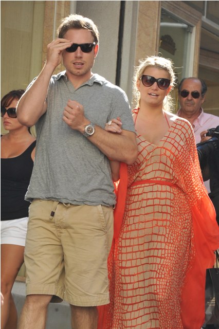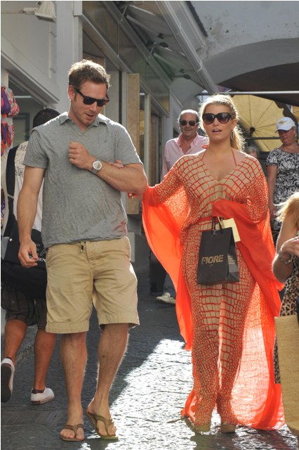 A week ago no one knew about my Porny Simpson and her new boyfriend Eric Johnson. Then TMZ broke it on Monday. By Wednesday Us Weekly had them on the cover. And photos of them in Florida suddenly emerged as he took her to a family gathering. Today the paps found them on holiday in Italy. Jesus, TRY to be more subtle about it, would you?