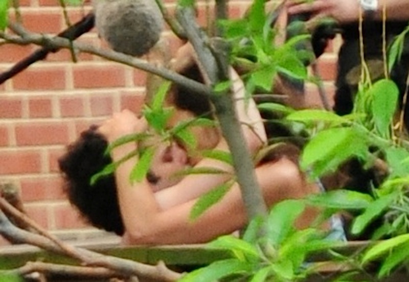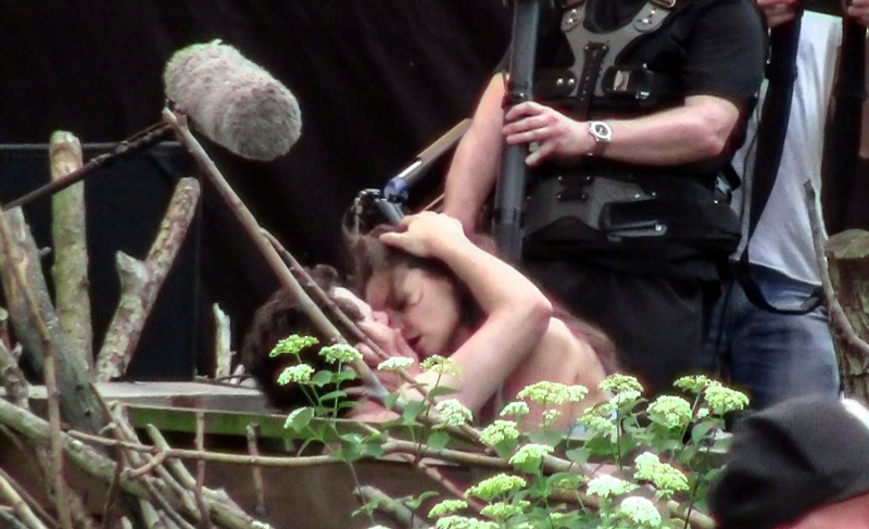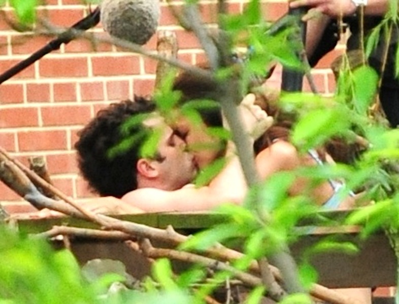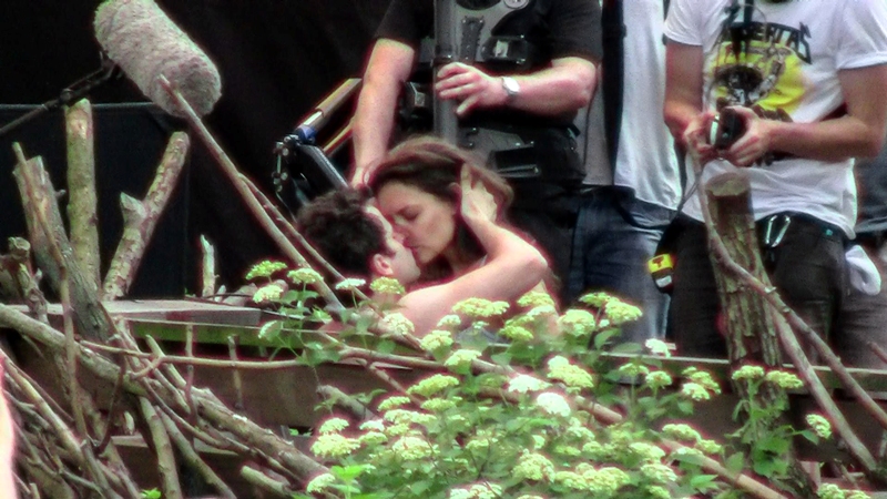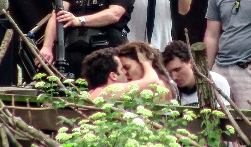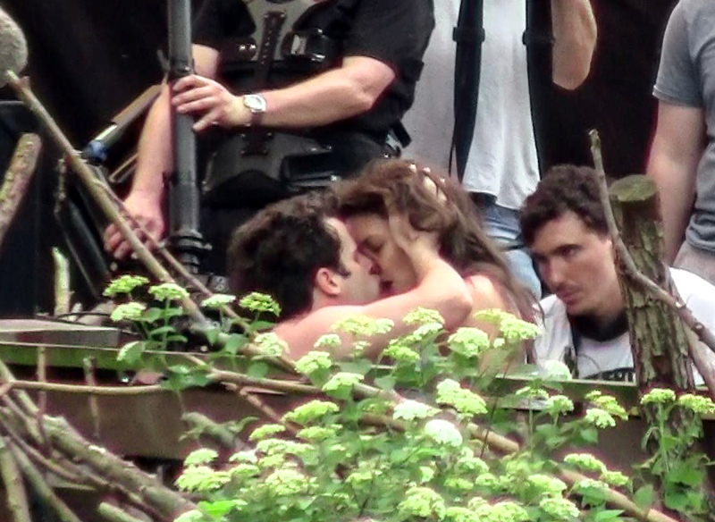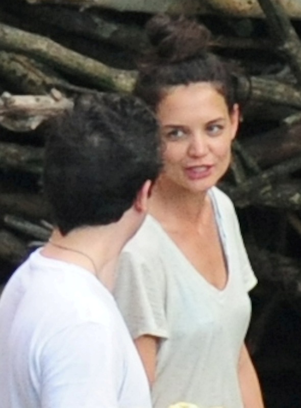 Check out a wanton Katie throwing her head back in a bra while filming a love scene. That looks pretty horny. And, as many have already pointed out, it would have been totally offside back when she was Mrs Cruise.