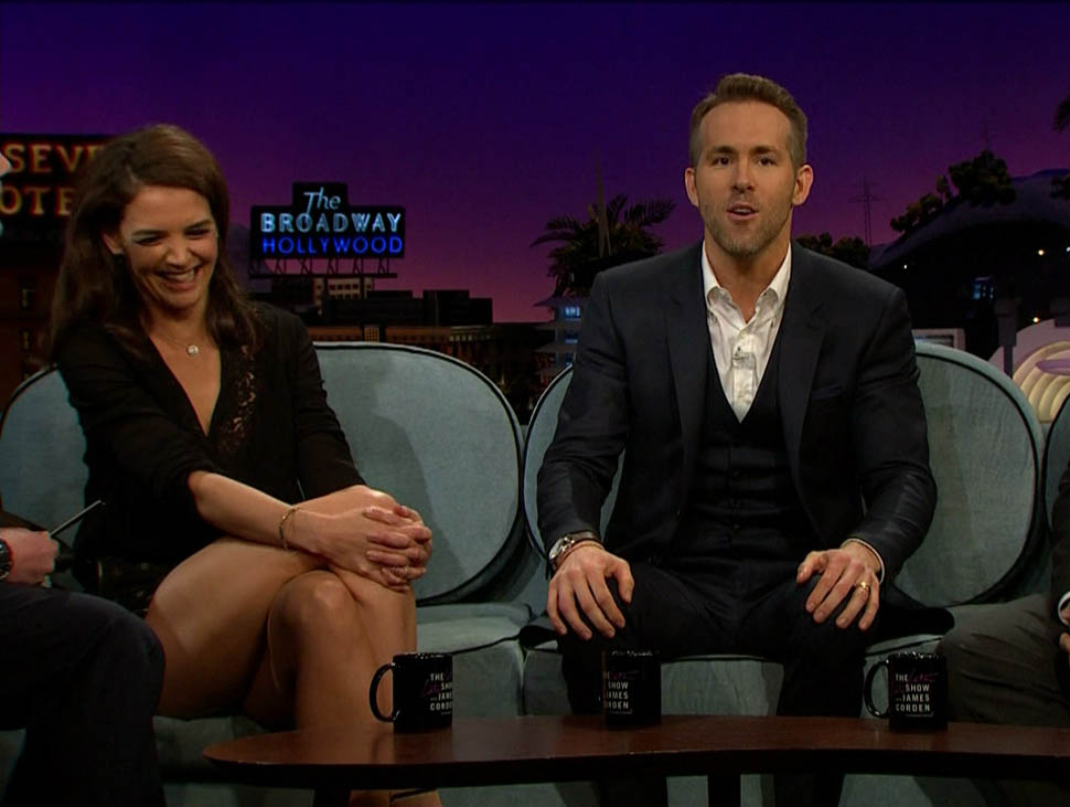 It’s important to note Katie’s only late night appearances on this press tour have seen her on the same bill as Ryan. Does having a friend nearby help her feel more comfortable, and result in better, more memorable TV? The show’s talent bookers are certainly cognisant of their guests’ comfort, requests and performance. Ryan’s been almost everywhere on his Deadpool hustle, and Katie’s the harder get. Perhaps Katie’s team asked to be paired up with Ryan as a means of helping her promote the film?