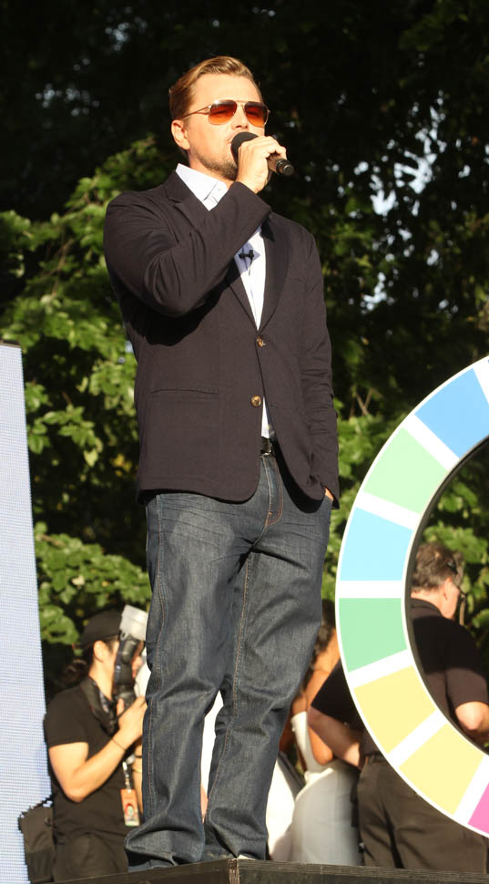 Leonardo DiCaprio spoke at the 2015 Global Citizen Festival on Saturday in New York. These are probably the best pictures we’ve seen of him in, well, in years. This is the version of Leo we’ll be seeing for the next several months as he campaigns toward his first Oscar for his performance in Alejandro G Inarritu’s The Revenant.