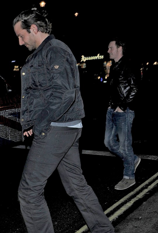 Michael Fassbender met up with his friend Bradley Cooper in London this weekend for dinner at the Wolseley. You know what’s great at the Wolseley on Sunday nights? Roast Rib of Beef and Yorkshire Pudding. Lorella and I also had the deep fried whitebait there once as a midnight appetiser with tartare sauce. Was delicious.