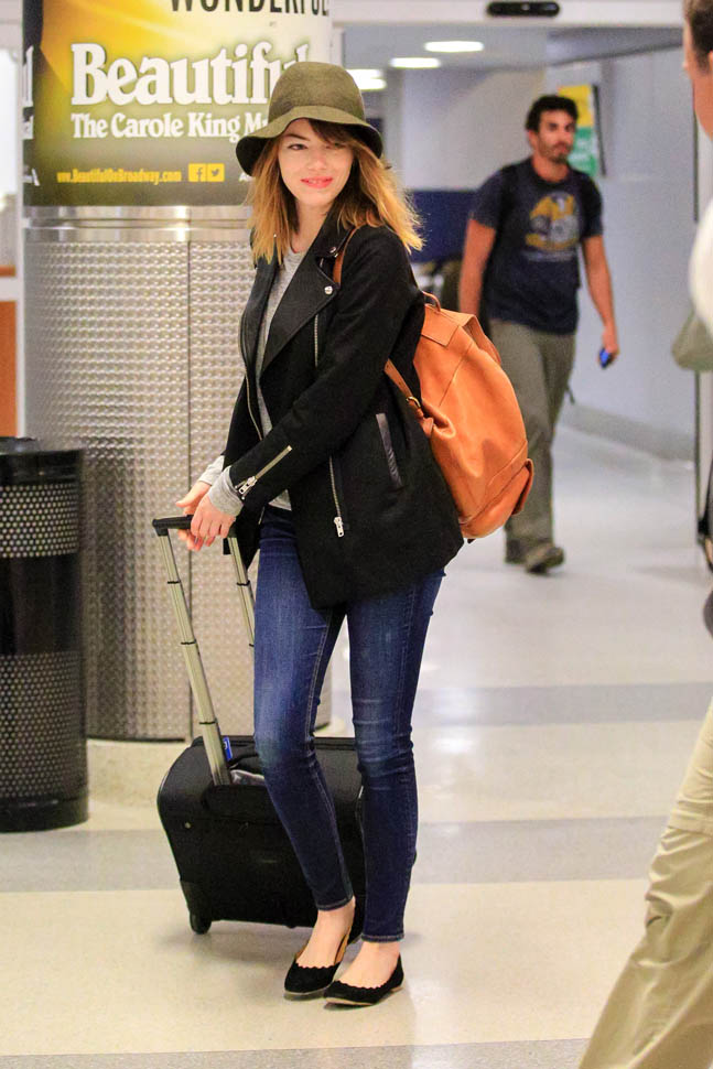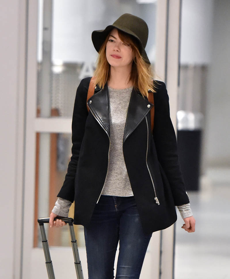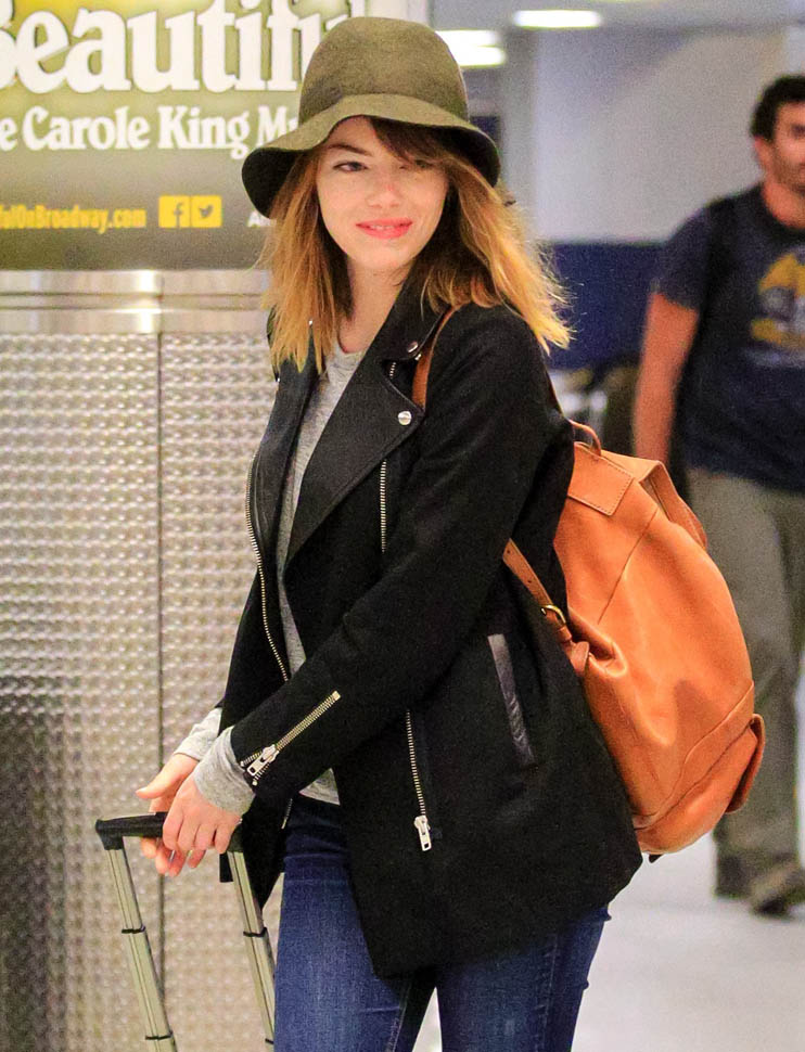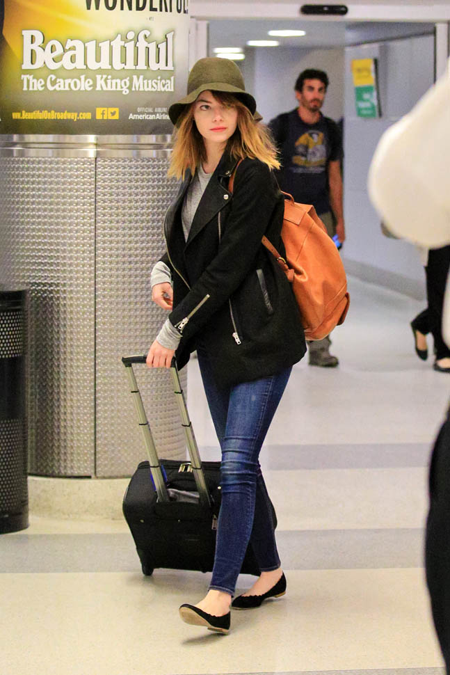 Also attached – Emma Stone arriving at JFK yesterday. Andrew Garfield was seen at LAX too, also on his way to New York.