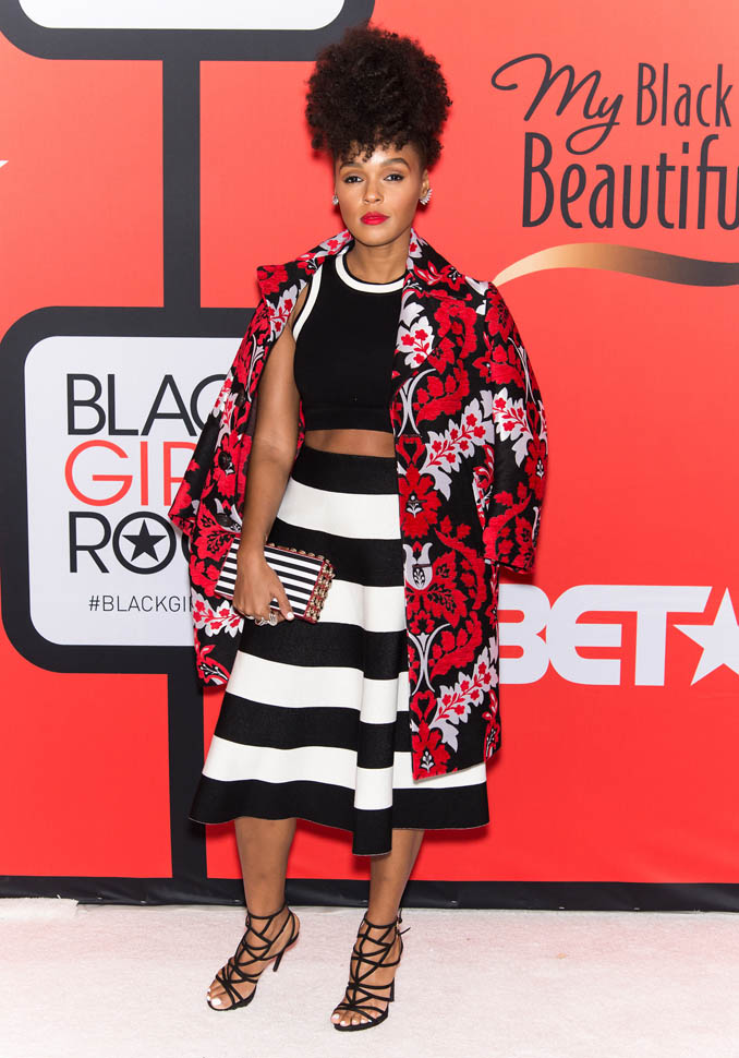 Attached - Keke Palmer on the set of Scream Queens a couple of weeks ago, and Janelle Monae at BET's 'Black Girls Rock!" event on Saturday.