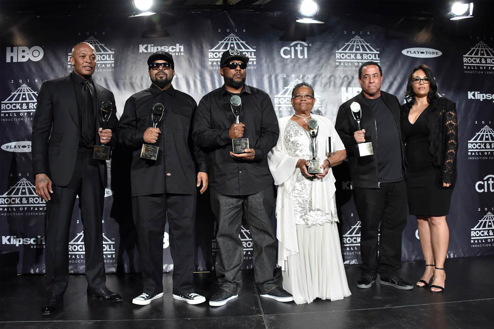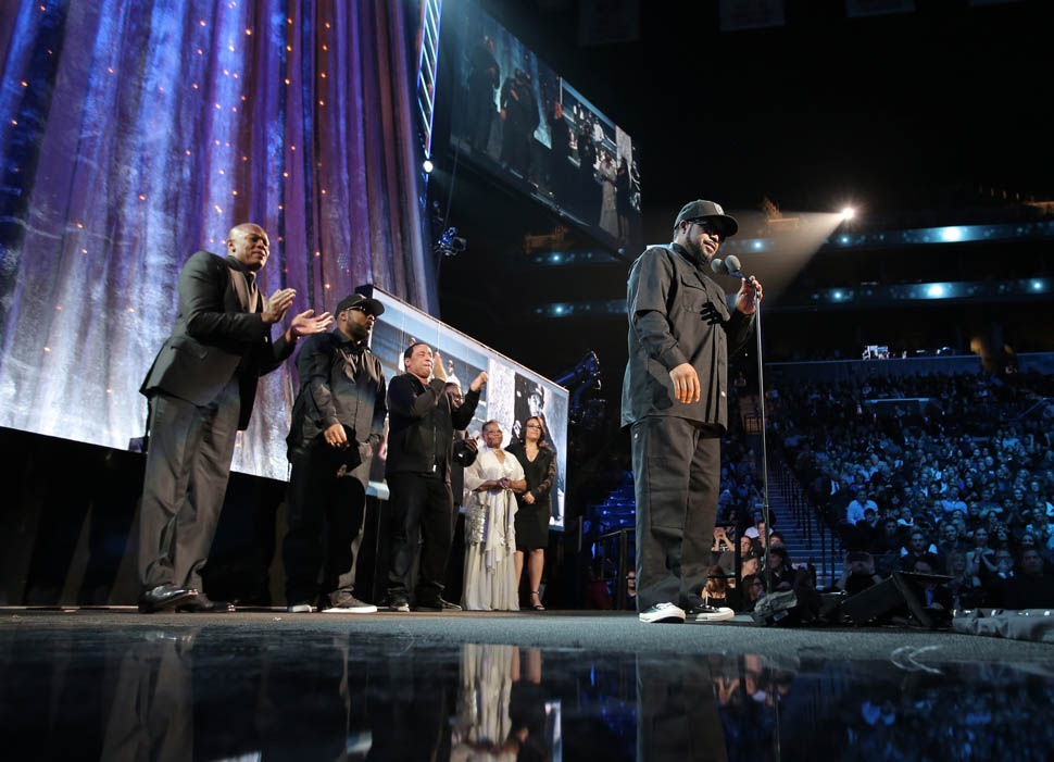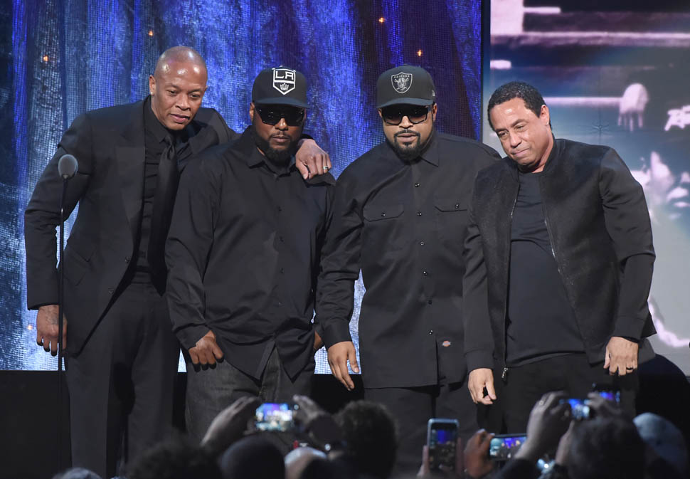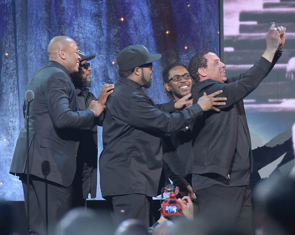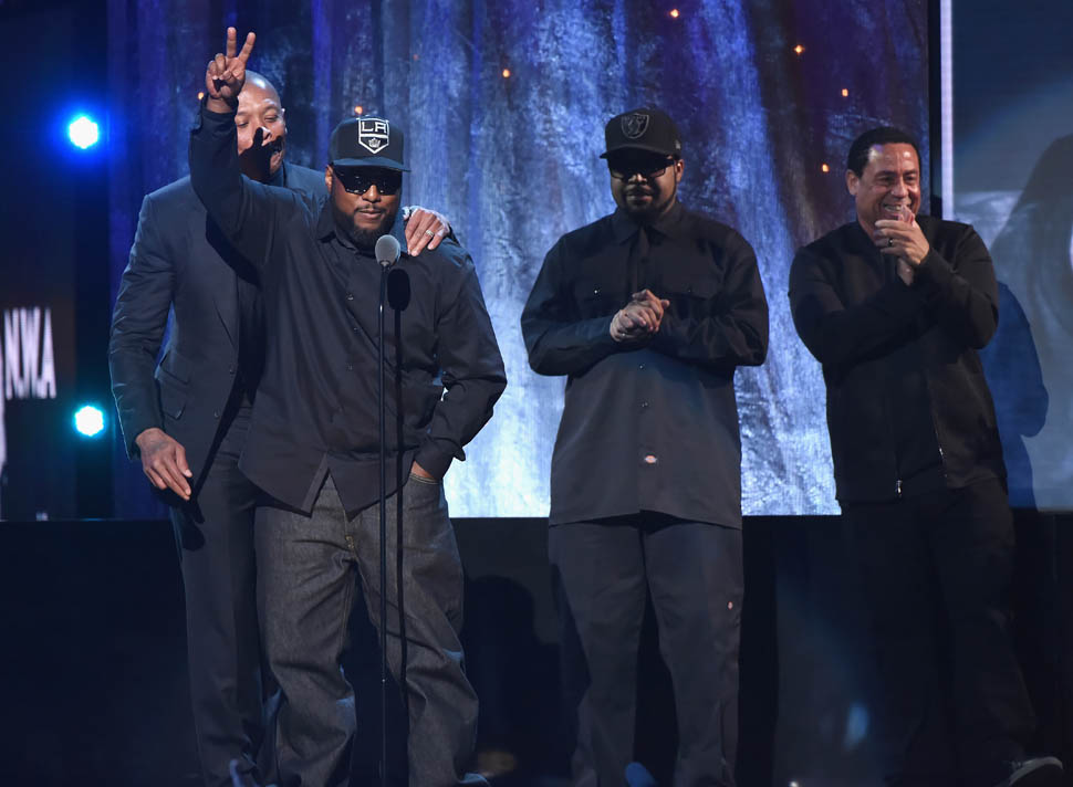 First, NWA was inducted into the Rock and Roll Hall of Fame on Friday night. Fellow Compton native and hip-hop legend in the making Kendrick Lamar introduced the group with a beautiful speech that captured the essence and importance of NWA. He talked about growing up in Compton and how influential it was for him to see his surroundings articulated so honestly to the masses. DJ Yella, MC Ren, Ice Cube, Dr. Dre and to quote Kendrick, “the gatekeeper of reality rap,” the late Eazy-E were unlikely role models. They were dubbed ‘The Most Dangerous Group in America’ but to Kendrick, they were his “black superheroes.” My favourite part of his speech: