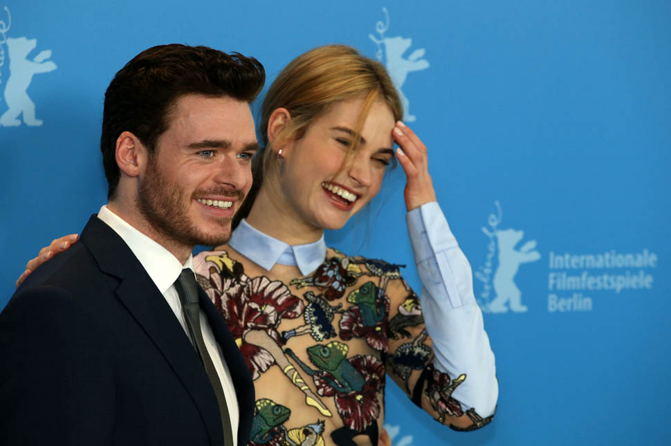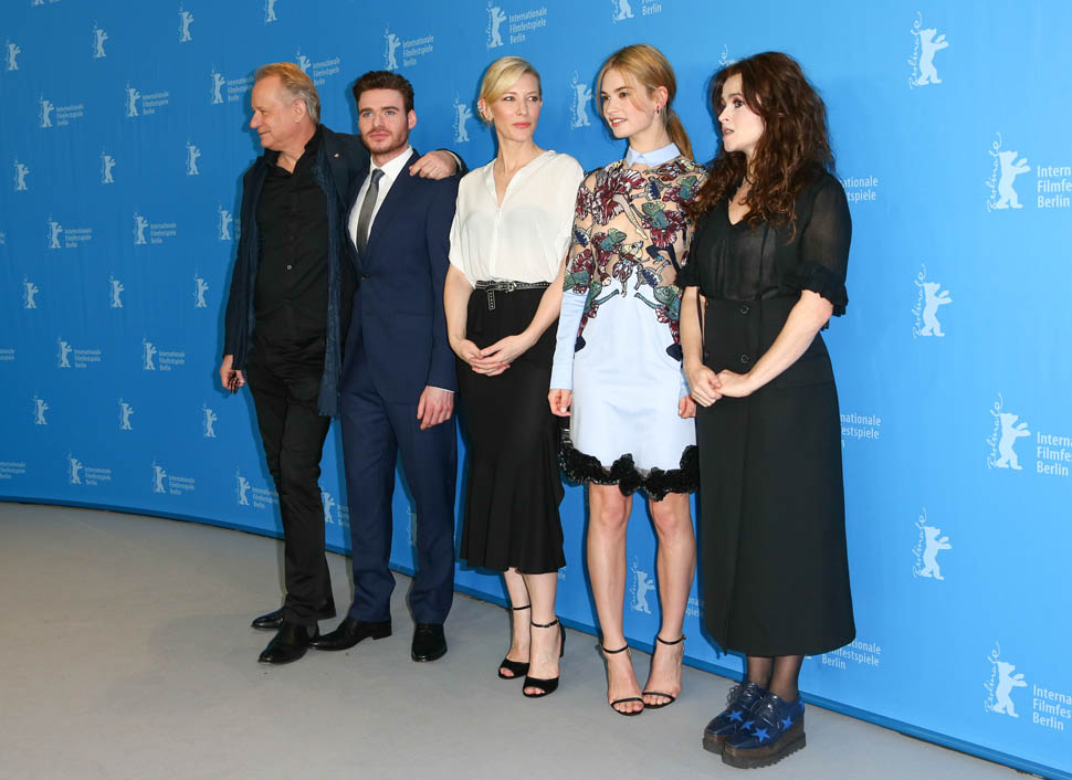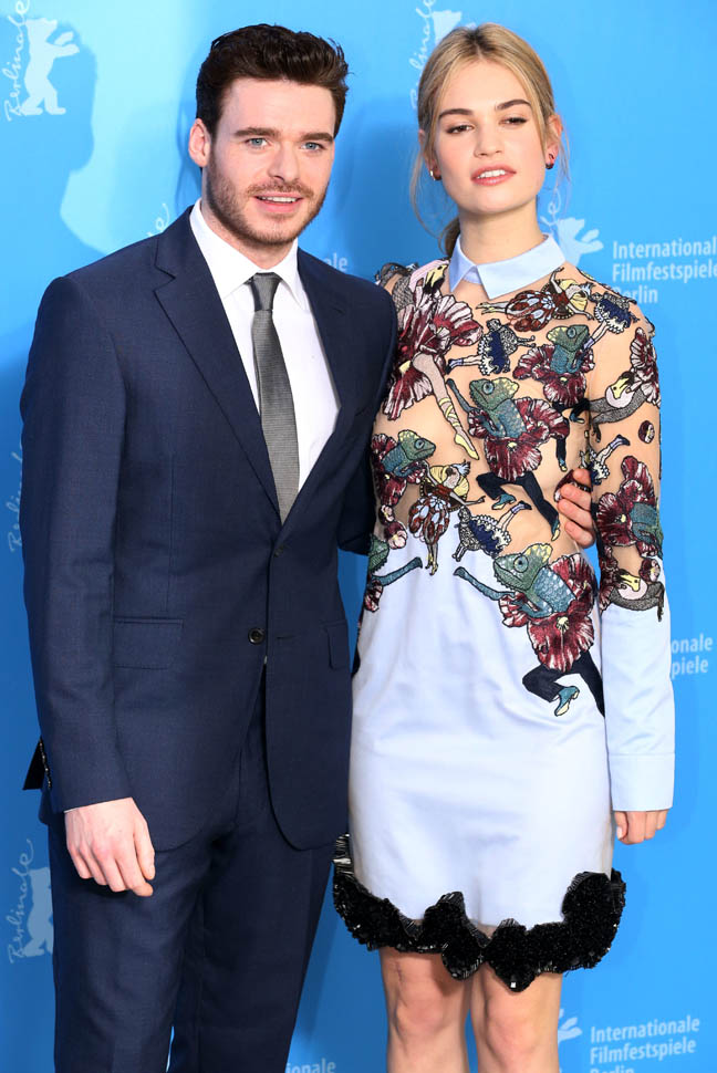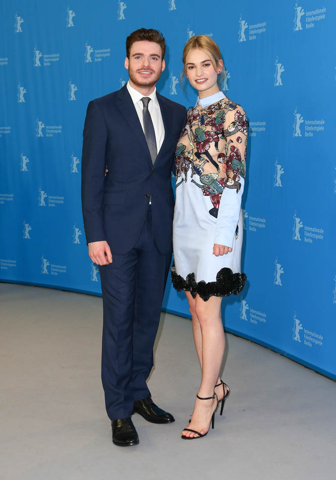Cinderella is screening at the Berlinale, and the cast appeared at a photocall and press conference today in Berlin to begin promoting the movie. (There’s also a new trailer featuring some serious horse porn, if you like big Baroque horses, like me.) It’s official—I have a Robb Stark Problem. Pretty doesn’t usually do it for me but it’s like his eyes are lasers. He’s also wearing the sh*t out of that suit. It’s on the boring side, but it’s appropriately tailored and it’s just so nice not to have to pick on fit that I’ll take it. I don’t understand why I didn’t see this on Game of Thrones, except that Robb Stark kept making terrible decisions and I spent a lot of time huffing angrily and waiting for his inevitable downfall because no one that stupid makes it for long in Westeros.