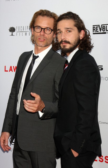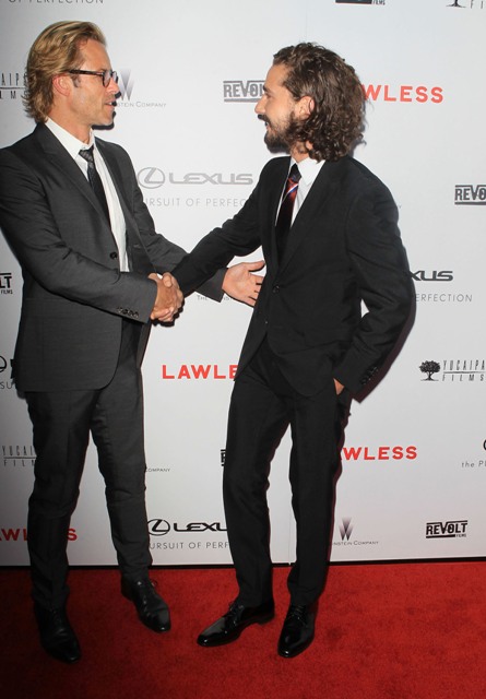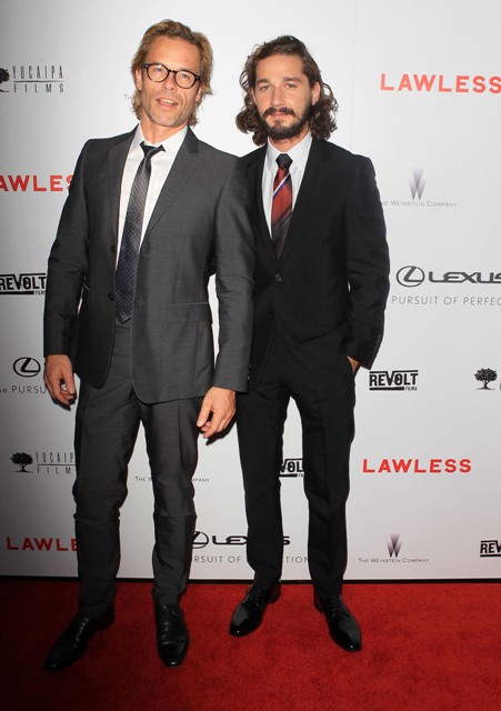 Jessica was not at the LA premiere last night. She’s in New York working on The Disappearance Of Eleanor Rigby and Tom wasn’t around because he’s in Africa for Mad Max. Here are Shia LaBeouf and Guy Pearce representing on the red carpet. Guy’s the villain in the movie. Maybe a little too over the top with the campiness but very effective nonetheless. As you can see, Shia had his girlfriend Carolyn Pho with him. A significant detail because a few days ago they were photographed tearfully arguing in public. Click here to see the pictures. Haven’t we all been there? And the relief afterward, remember?