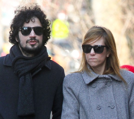 Kristen Wiig and Fabrizio Moretti hooked up towards the end of 2011. So it’s just over a year now. Here they are walking around New York on Sunday. Fabrizio’s ex-girlfriend and Kristen’s maybe ex-friend Drew Barrymore is on the cover of the current issue of ALLURE -- did you read her comments about their relationship?