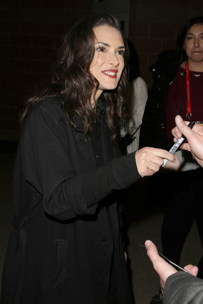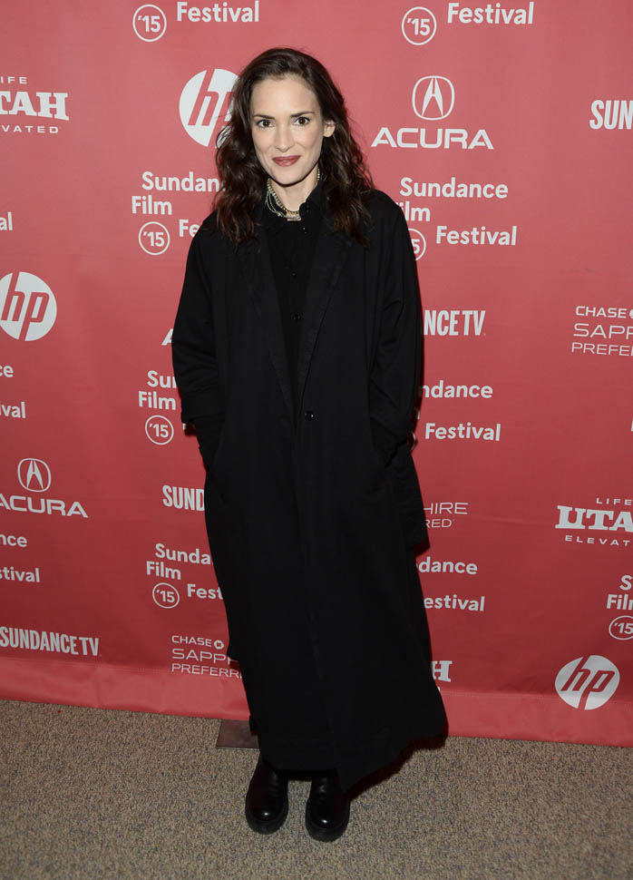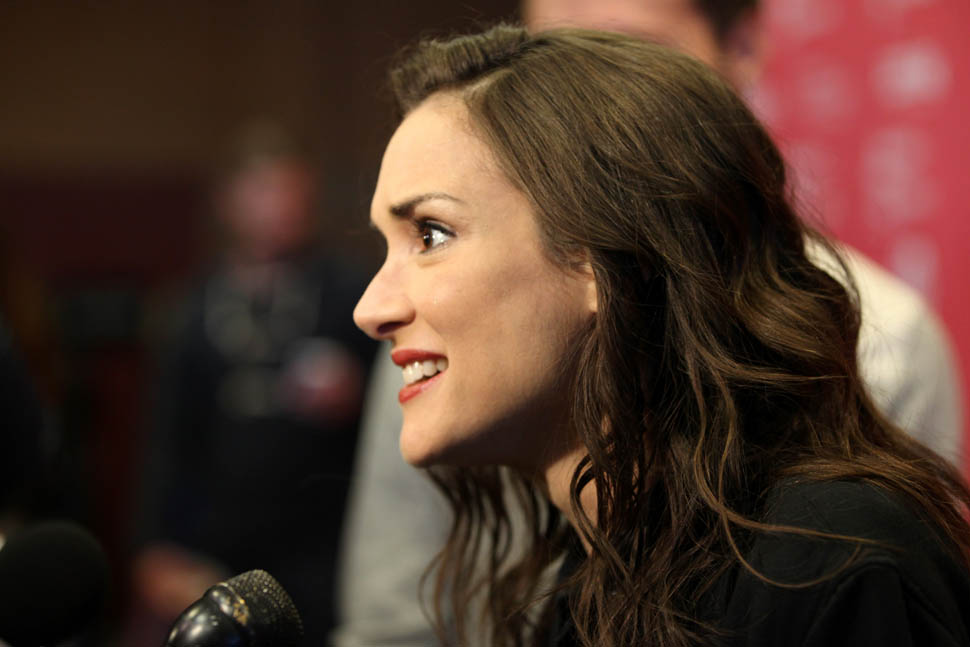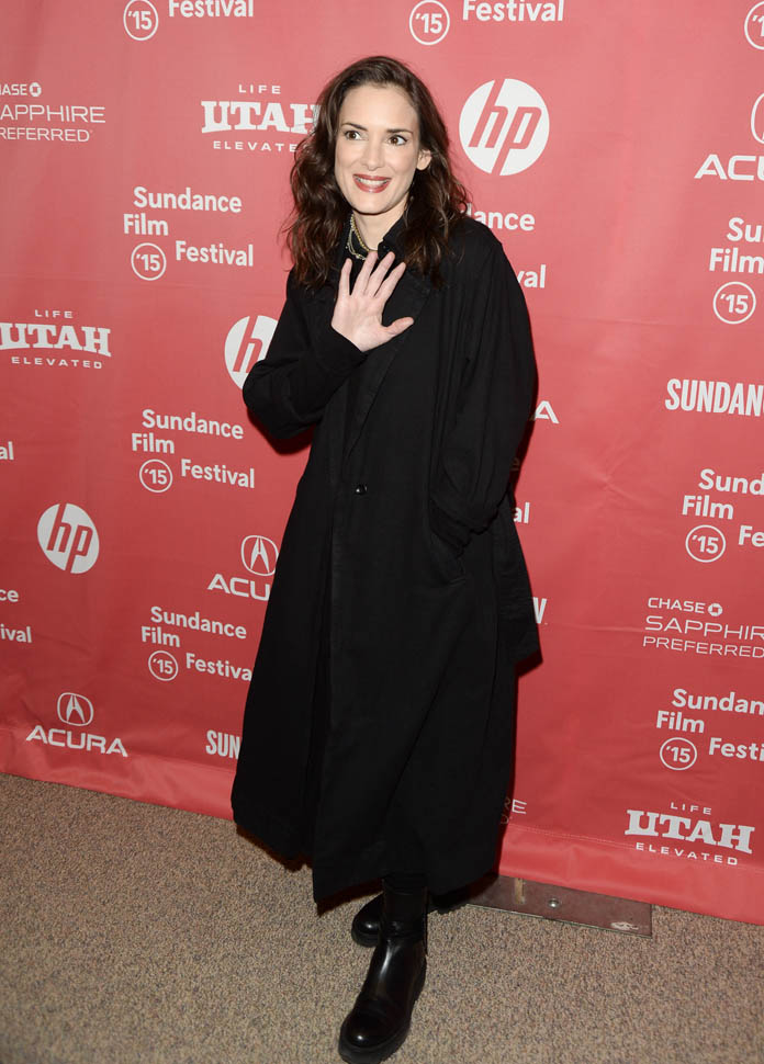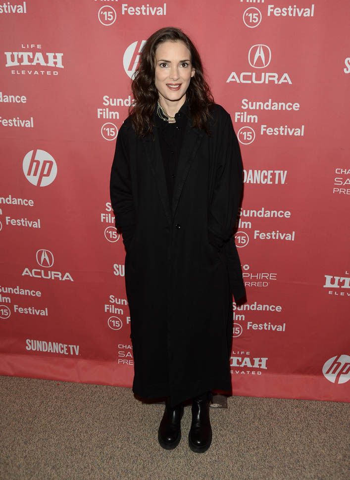 A wild rare Winona Ryder appears. She's promoting Experimenter at Sundance, alongside Peter Sarsgaard and Kellan Lutz Wearing Glasses—Kellan Lutz Wearing Glasses is the new Kellan Lutz In A Tree. Anyway, back to the only one who matters, Winona. She's beautiful and That Face and Experimenter is getting good reviews, which is most pleasing. I like it when there's potential to see more of Winona.