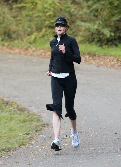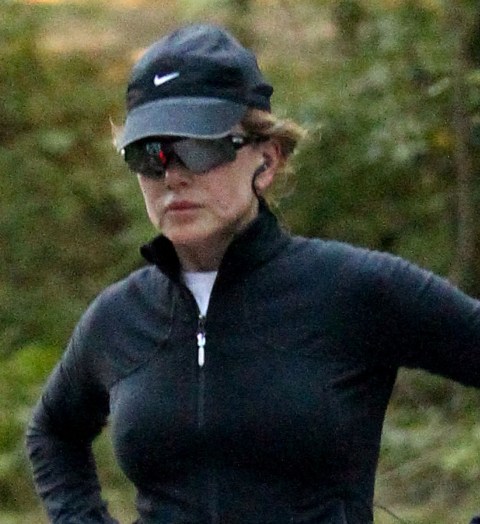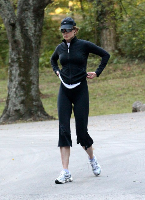 There’s Gran on a run, making sure to stay Hollywood sized even though she’s supposedly enjoying all the southern comforts of Tennessee. Even Gran has to stop to hike her pants up mid-way through her training session. And as you can see, not even Gran’s substantial injections can fight the effects of loose skin mid-stride. It’s the only way her face moves. When she’s jogging.