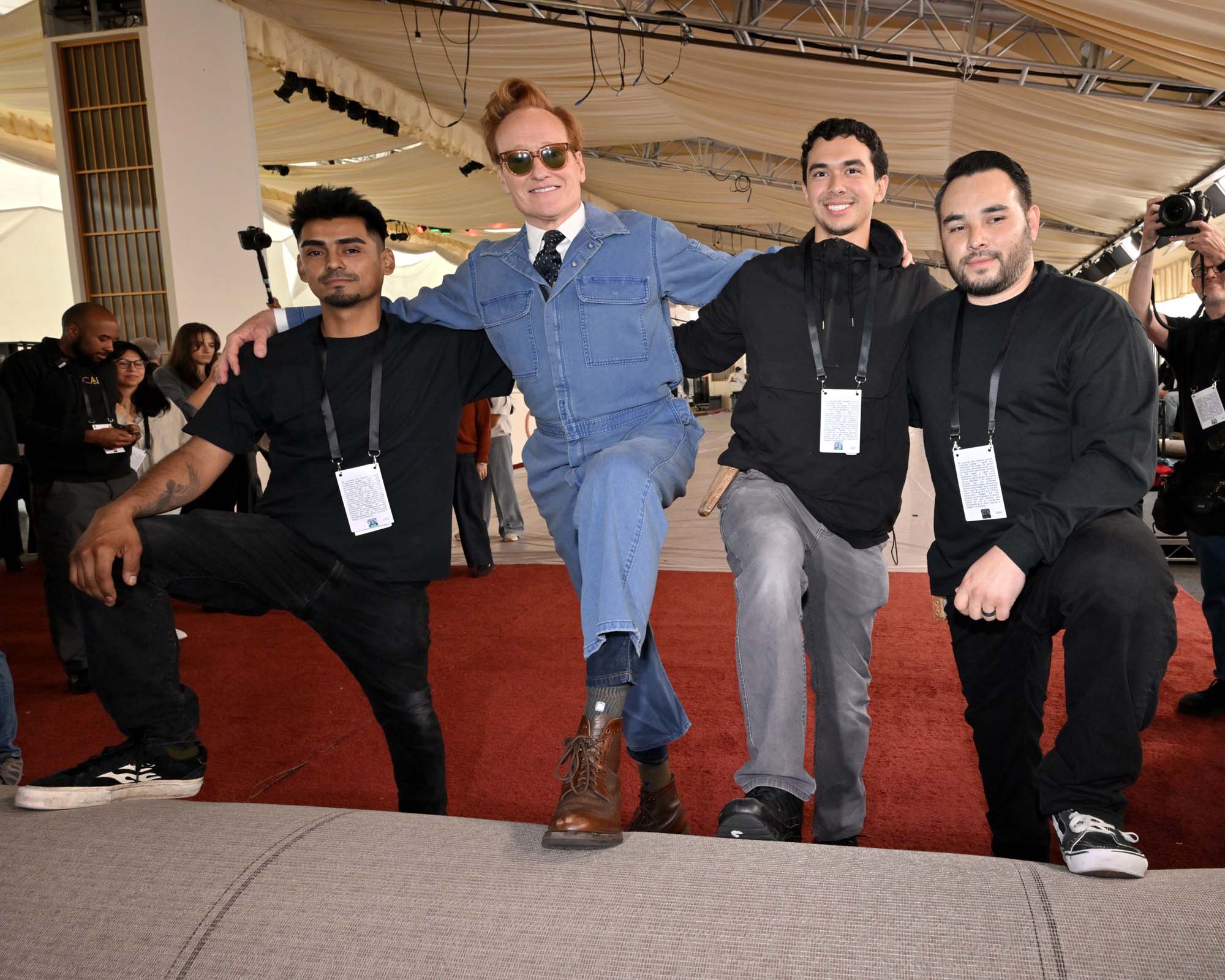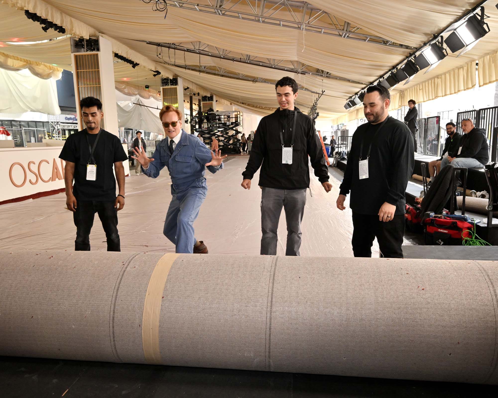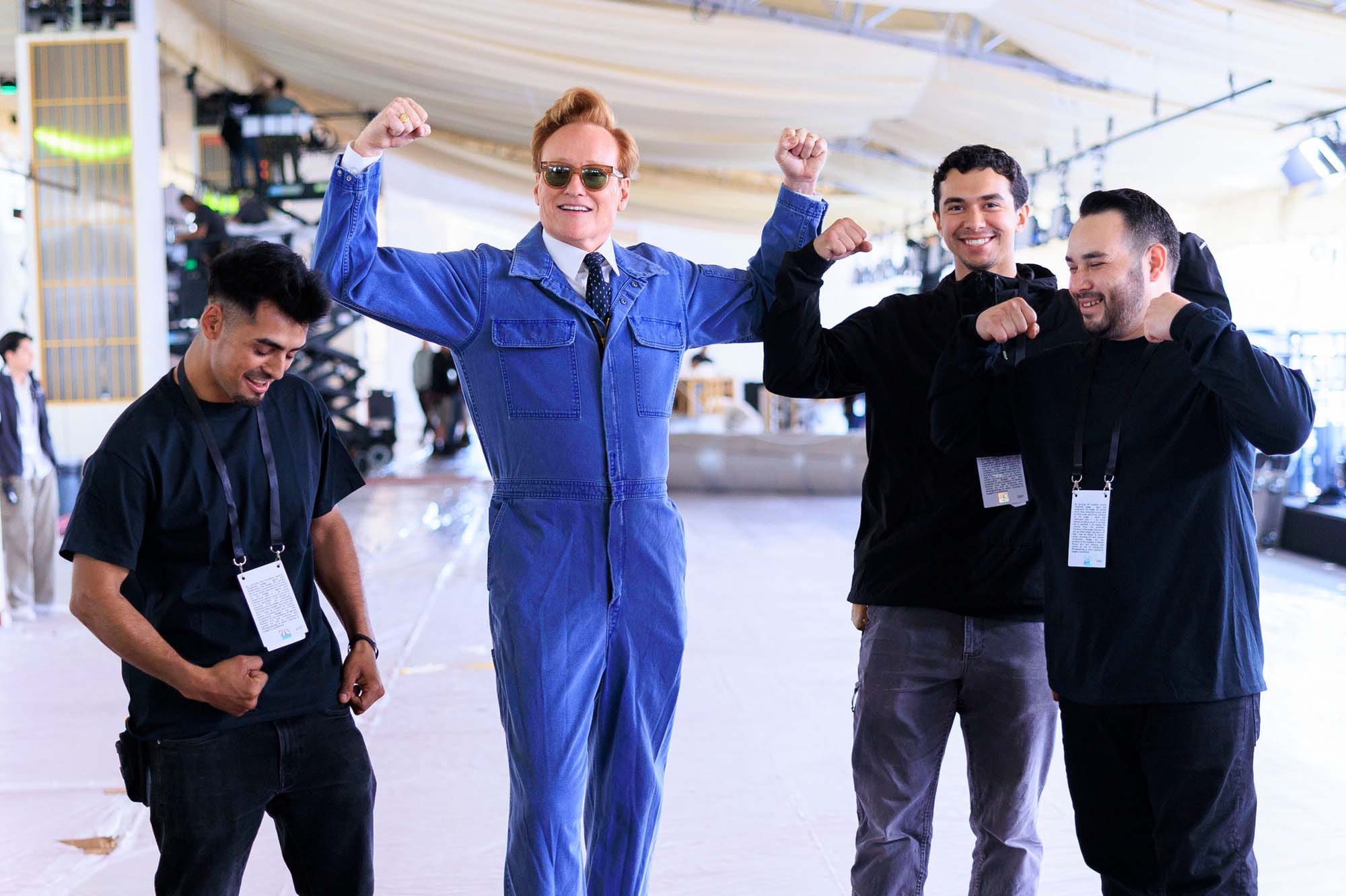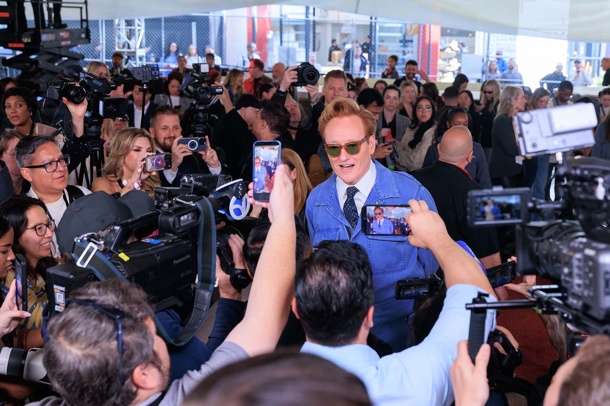 Yesterday, Conan O’Brien, who is returning for his second stint as host of the Oscars, rolled out the red carpet at the Dolby Theater. He did so while wearing denim coveralls, a collared shirt, and a tie. This is a look that like, six people maximum, in the entire world, can pull off. Conan is one of them.