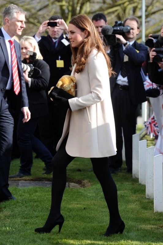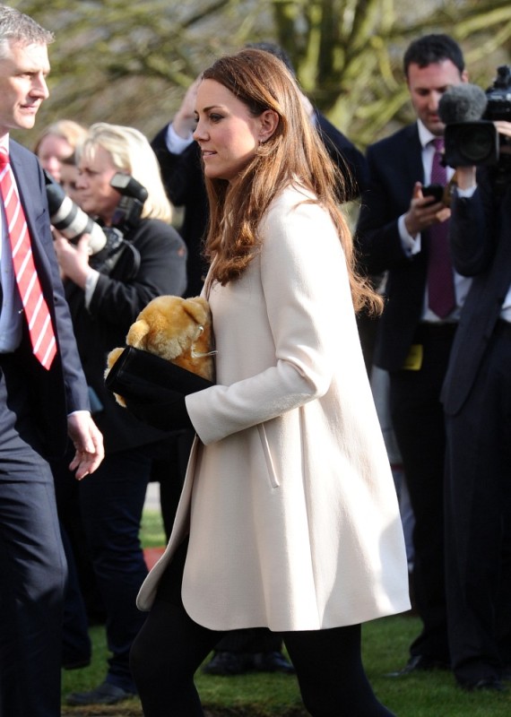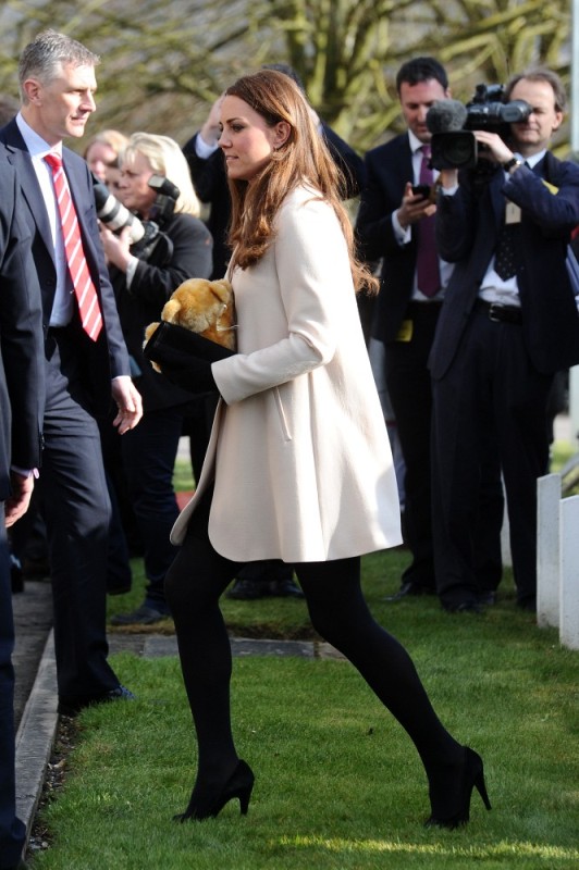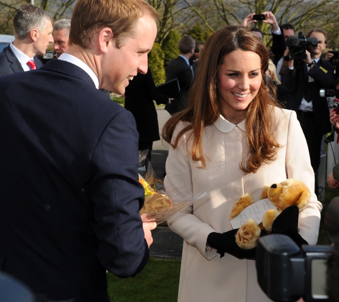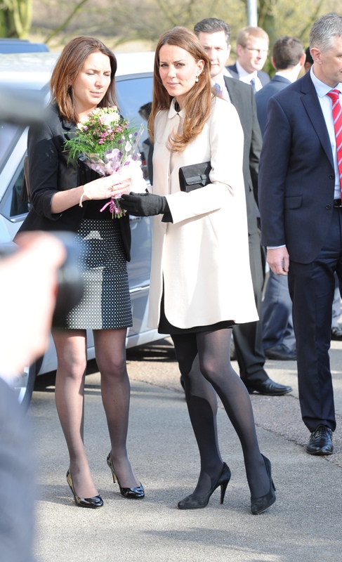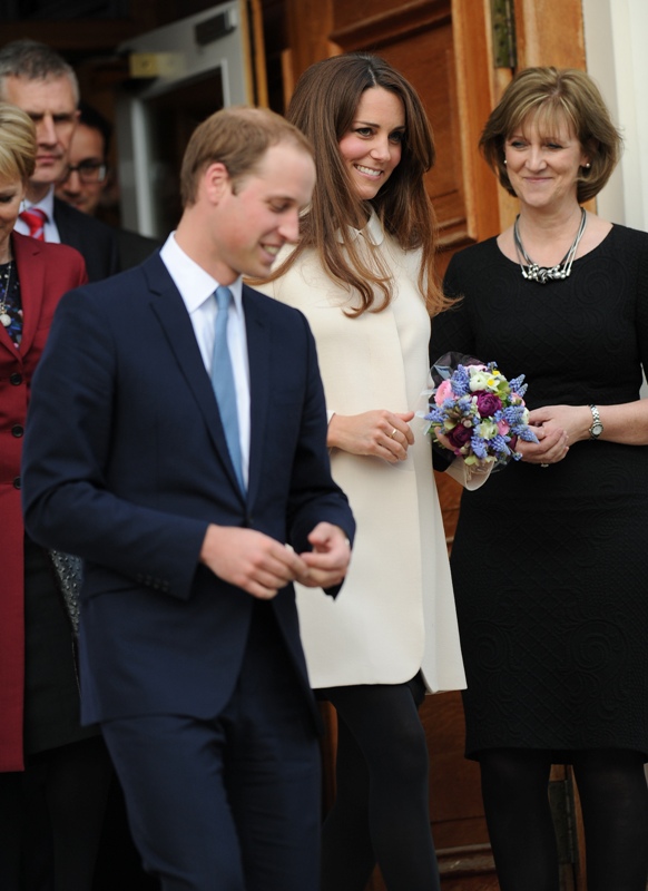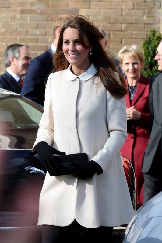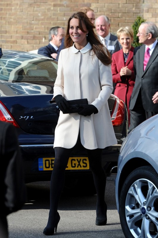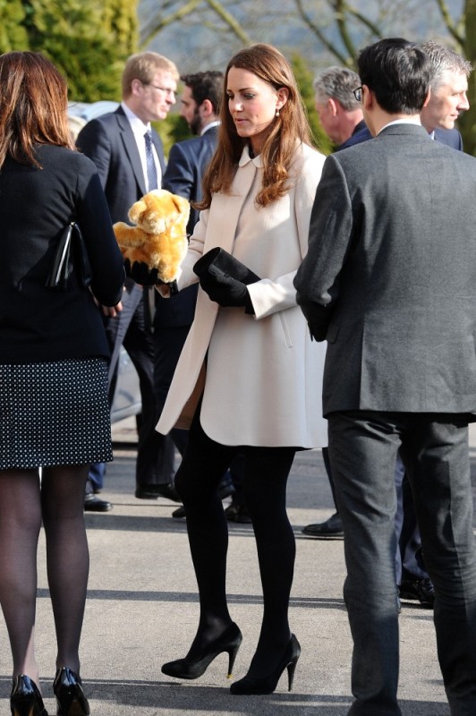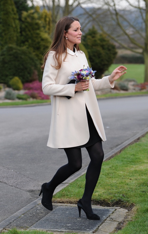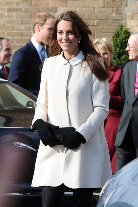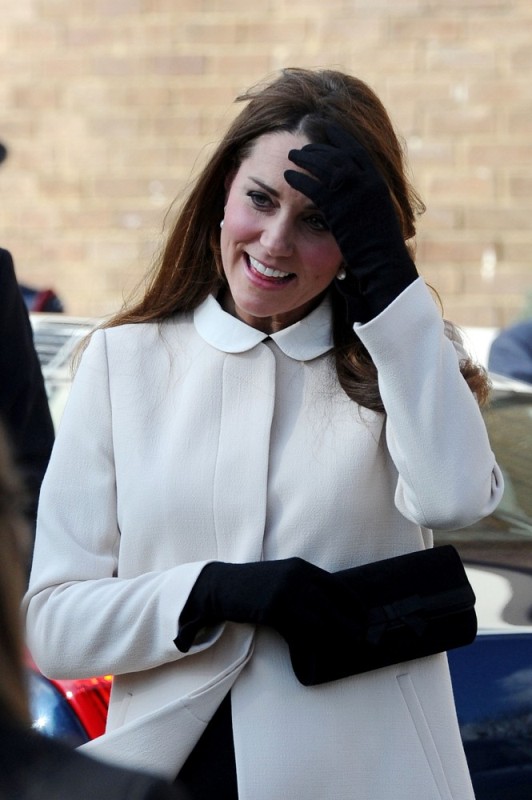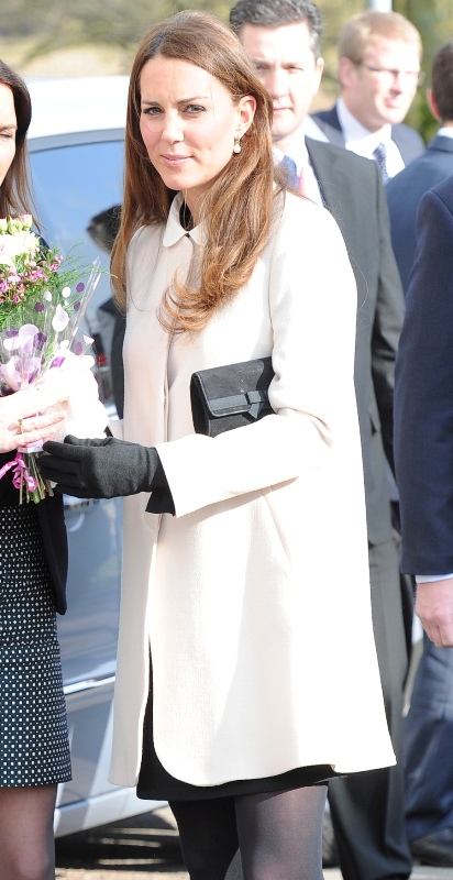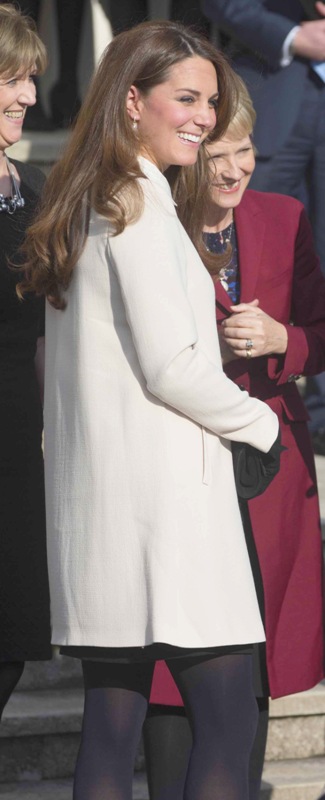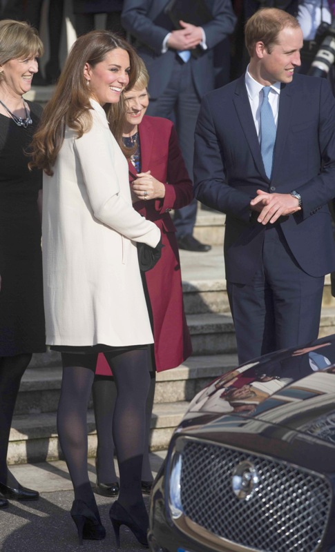 Now here’s something that will work for the old white people who are scared of immigrants and the more evolved -- Prince William and Catherine visited the offices of Child Bereavement UK today. According to What Kate Wore she’s in an off-white coat by Goat and a black Topshop dress with a peter pan collar that fits over perfectly. Well done, Katy Cambridge.