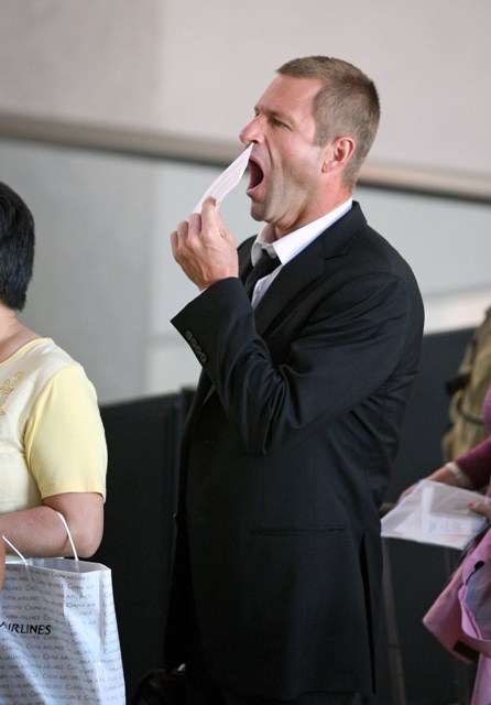 Perhaps this is why Aaron Eckhart is yawning.