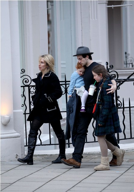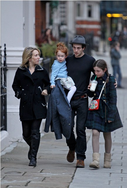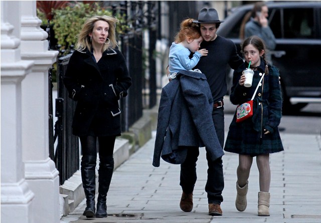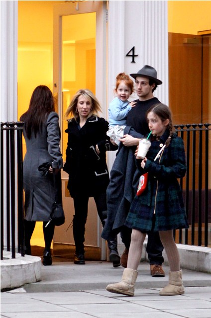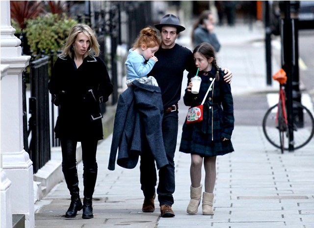 They were taken on March 27th in London. Aaron went for Starbucks, then went to get Sam at the salon with her girls. All four of them left together. As you can see, he seems to have a close relationship with them, and it’s one happy family with another on the way.