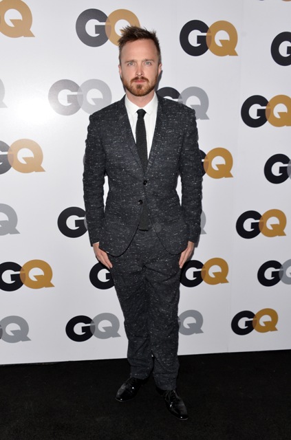 Maria wrote to me from Toronto last night, her first time there, bitching about the 3 hour time difference. It is indeed a tricky time difference. But by her own admission, she was being a baby about it, so, to make her feel better, maybe, here's Aaron Paul at the GQ Men of the Year party last night.