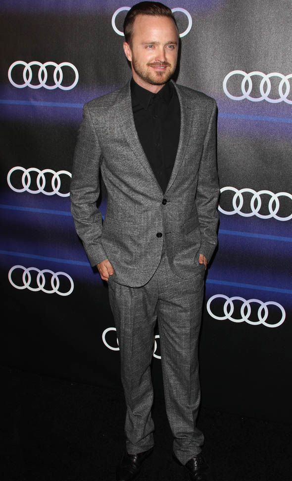 The Emmys are on Monday. There will be parties all weekend. Last night Aaron Paul and his wife, Lauren Parsekian, were at an Audi event. It’s the last chance for the television academy to honour Breaking Bad. And, as Maria wrote the other day (click here for a refresher), even though they’re moving on, have moved on, both Paul and Bryan Cranston don’t seem to be in any hurry to forget about this run, about the show that made their careers. Unlike Alexander Skarsgard who’s already buried Vampire Eric. I feel like Jon Hamm might have a little of that going on too. Agree or disagree?