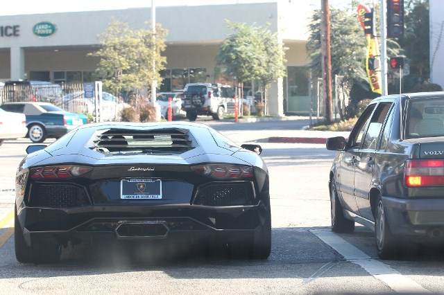 Photo Assumption tells me Aaron wasn’t thrilled to be shot driving the Lambo. I mean he didn’t get out and wax the hood or anything. Does the guy who tears up receiving an award and who is currently Twitter stumping to keep an LA taco stand open seem like the type to drive around in a cheesy sports car? It’s a definite disconnect.