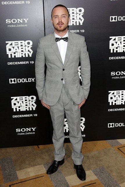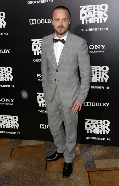 More photos of Aaron at the Zero Dark Thirty premiere, putting his hands not quite in his pockets, but doing a weird thumb hook thing. It looks like he was flying solo. He hasn’t been photographed with his fiancé Lauren in… a while. But they are in still in love, which I easily confirmed, um, through Twitter. They are the kind of couple that tweets sweet nothings to each other. You know the type -- they are the same kind that use a combined email address: johnandjanedoe@gmail.com. Seriously, get your own email address; I can promise you are getting left off of the best email conversations by your friends because no one wants your pumpkin to read their messages.