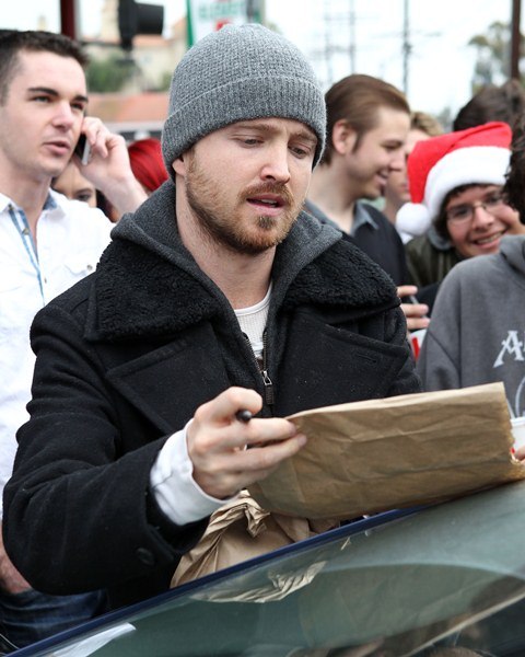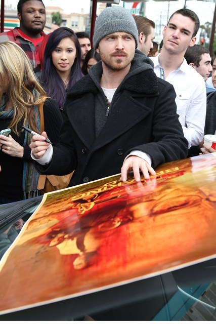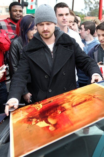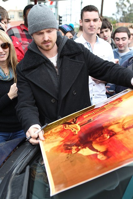 But actually – what is he doing? He’s in LA, so definitely not filming Breaking Bad. But he’s attached to a car franchise, Need for Speed, so research? Maybe? It’s very possible.