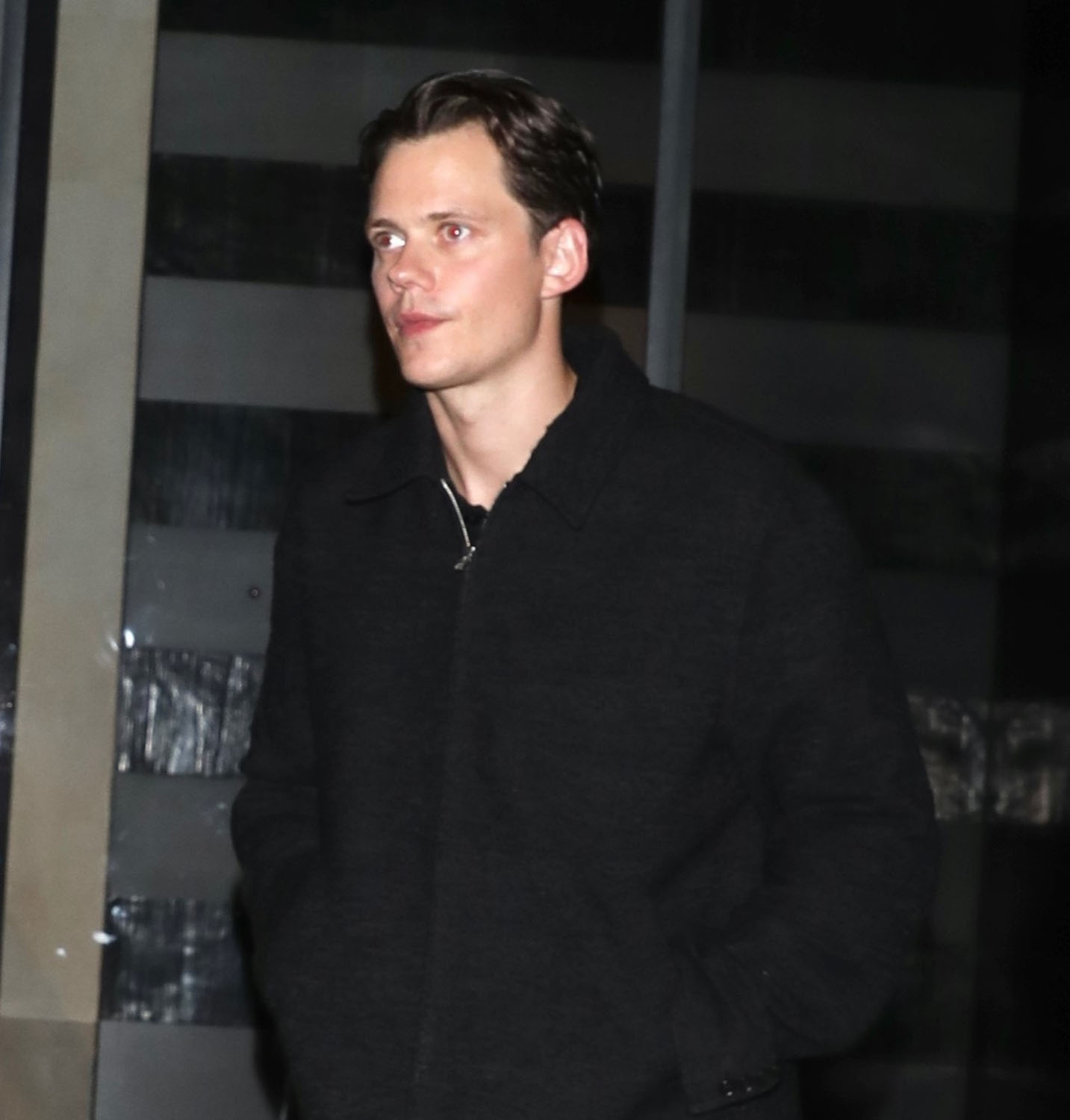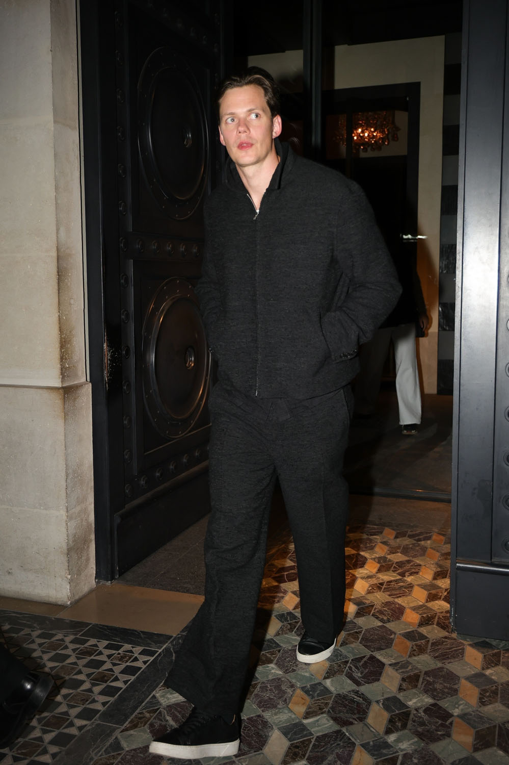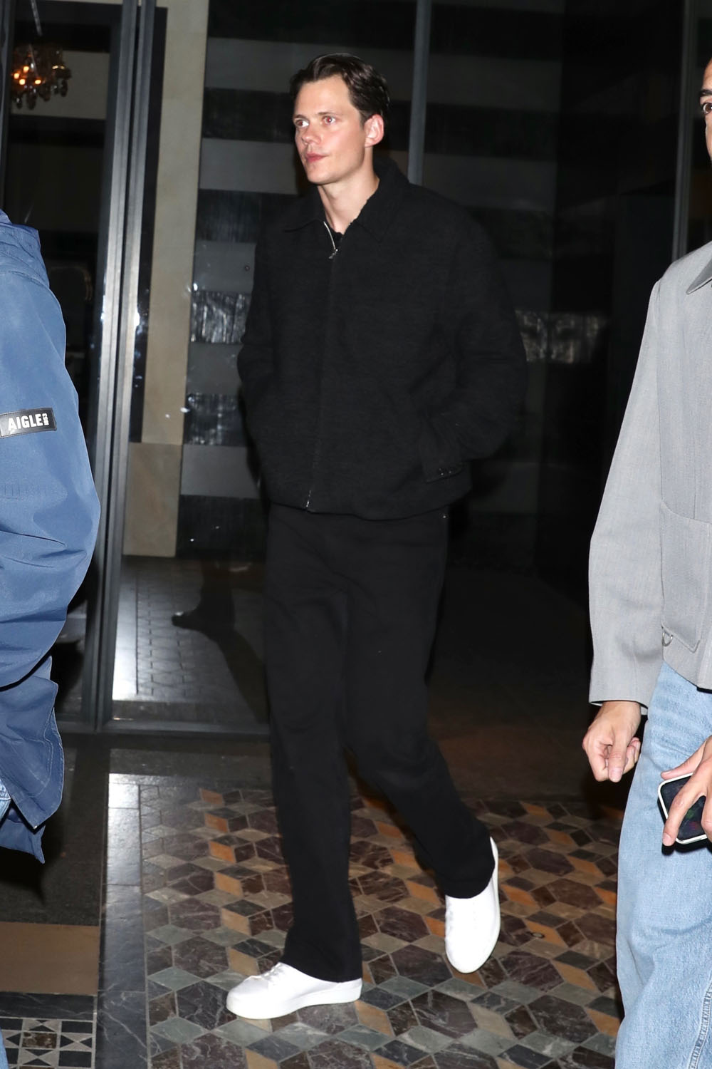 Here is Aaron Taylor-Johnson arriving at his hotel in Paris with wife Sam, and Bill Skarsgard heading out for dinner in Paris on Friday.