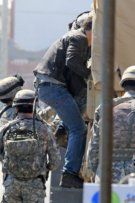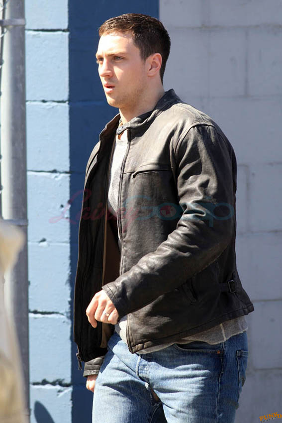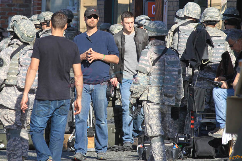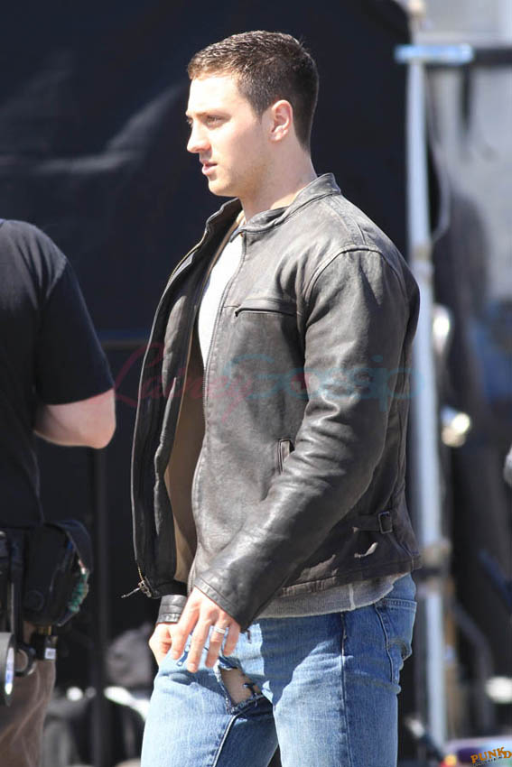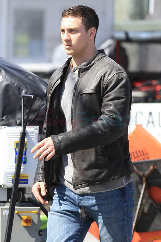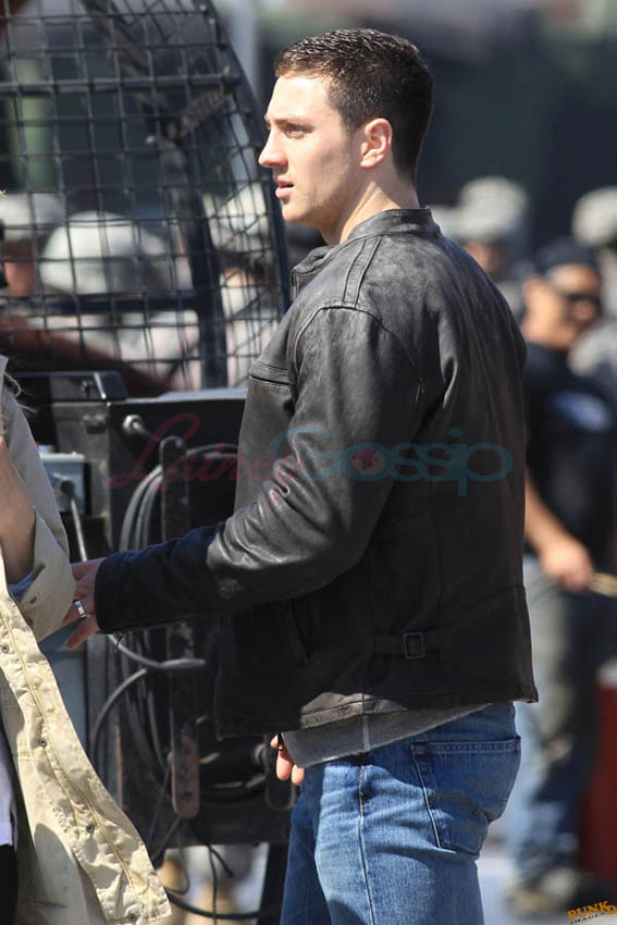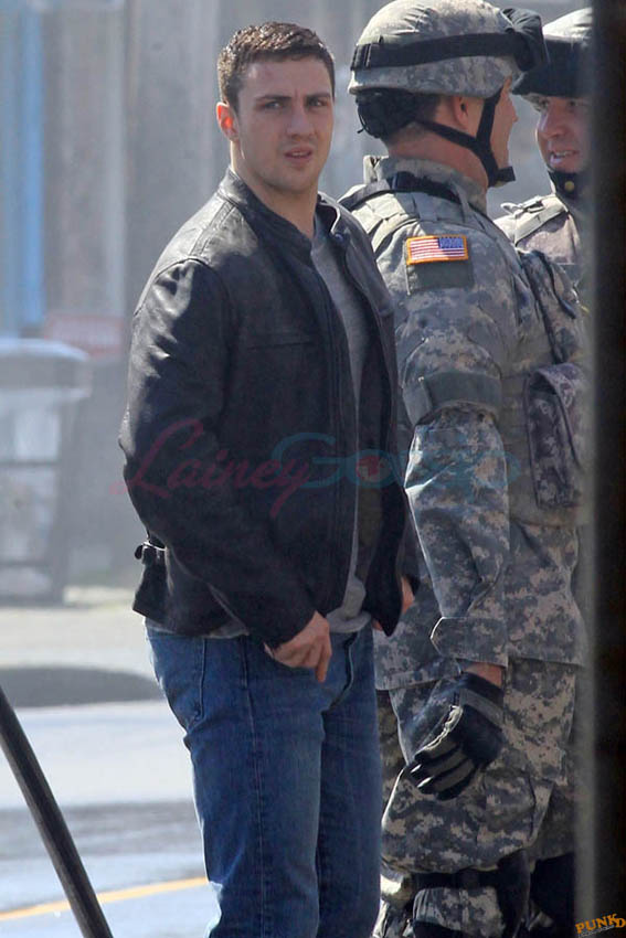 Aaron Taylor-Johnson in Steveston (just outside Vancouver) today shooting Godzilla. As you can see, he’s muscled up for the role. There’s a little Channing Tatum going on here, non? And a Hulk in his pants. Oh stop. I mean the rip, see? The rip at the crotch?
