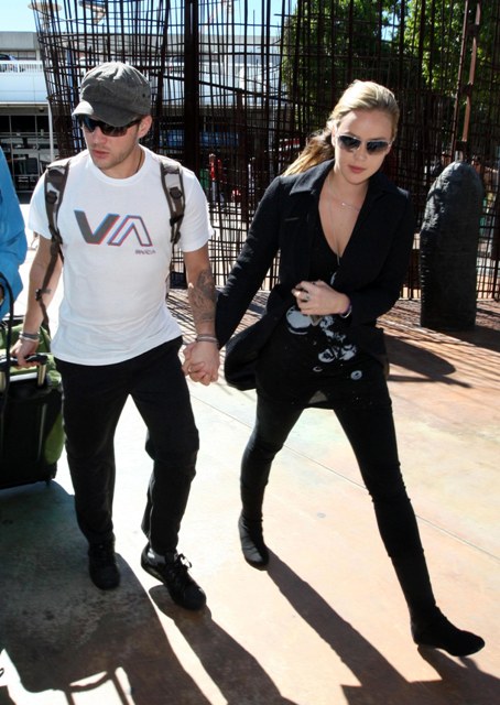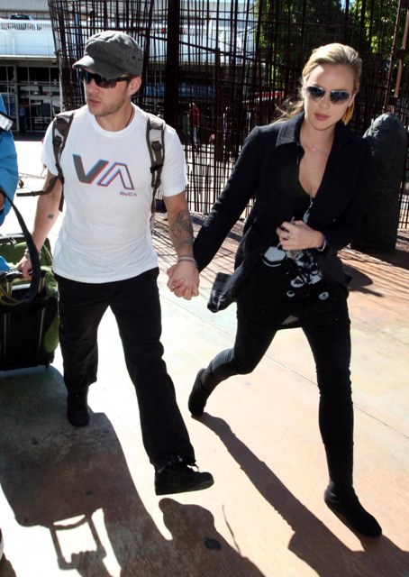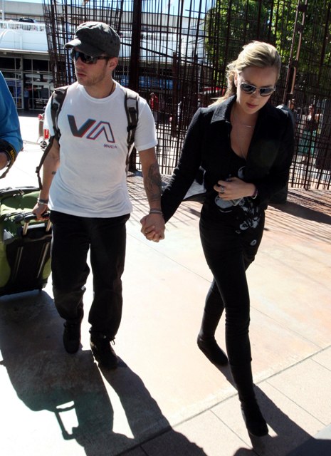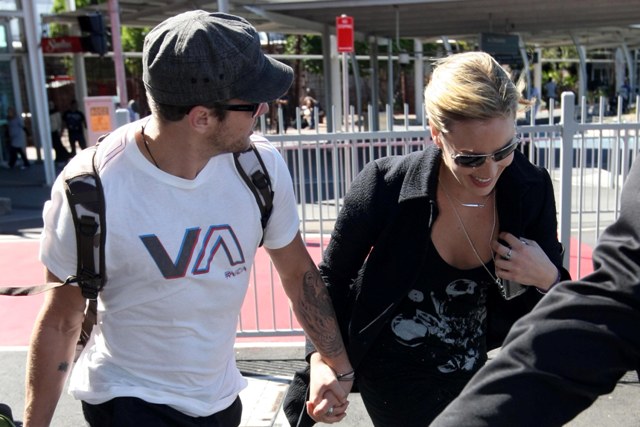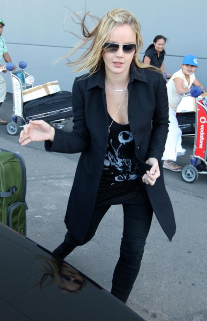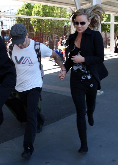 Abbie does look happy though – as you can see, she can’t quite suppress her smile even in front of the paps. Long distance is hard on love. And that relief when that person is finally standing there in front of you… it’s like your insides are untwisting. I still remember it. Does she look like Charlize Theron to you? She does to me.