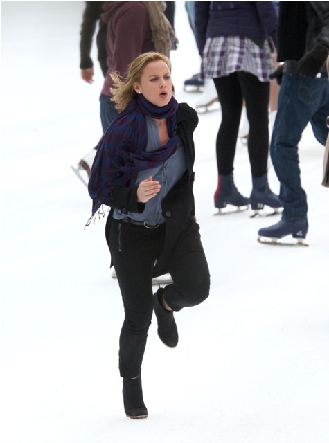 Abbie Cornish is shooting The Dark Fields in New York. They filmed an action scene today at Wollman Rink. Jacek and I were there in December. It’s a lovely stop in the winter.
