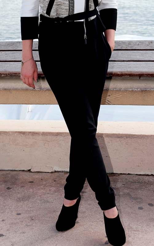 I need these pants. They’re really good flattering pants. They hang well, and I don’t mean they hang well because she’s giving them nothing to hang onto either. Abbie doesn’t have a Kate Bosworth body. She’s fit. She has some curves. And these pants are tailored to work with curves. Love that.