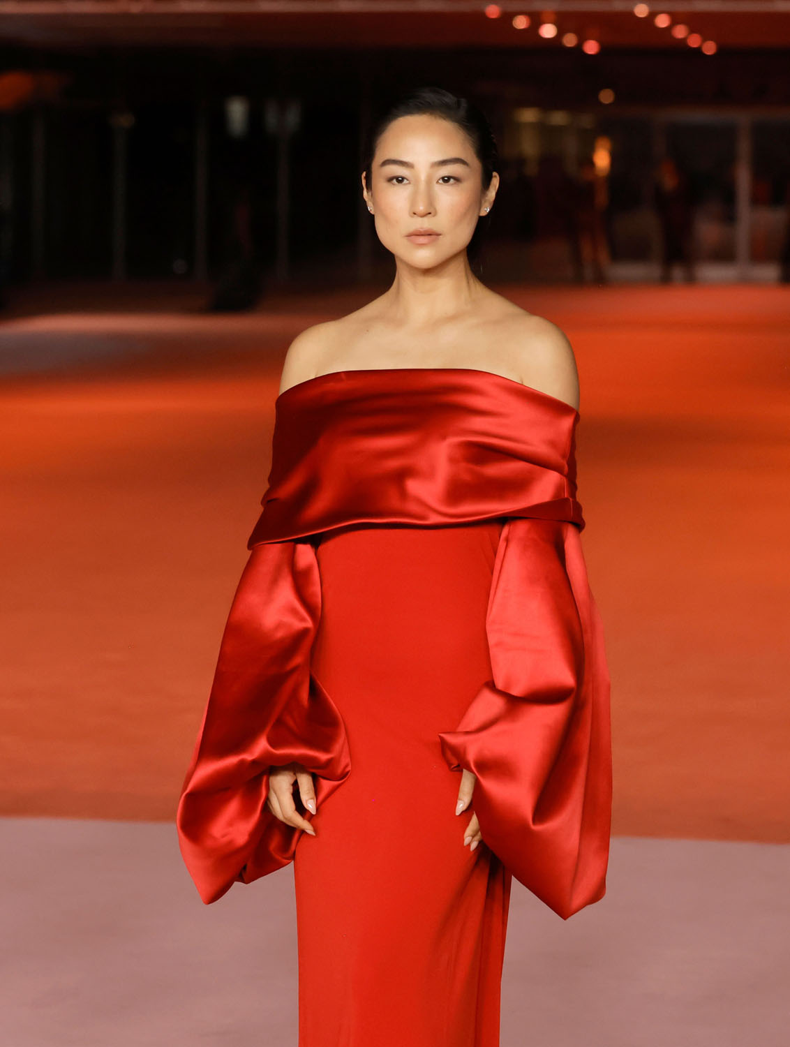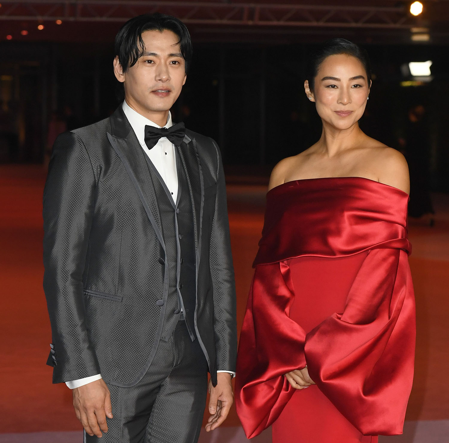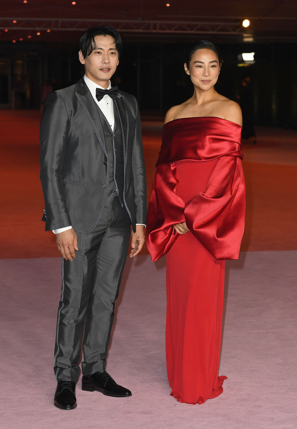 Back to Greta and her sublime red Loewe dress – and it has to be sublime when it’s a red dress for me because I never love a red dress but this one is really, really special with the off-the-shoulder detail and the sleeves… JW Anderson really loves her and you can tell, what she gets from Loewe is so beautifully suited to her. Also great to see Teo Yoo join her at the event as he was missing from the Gothams last week.