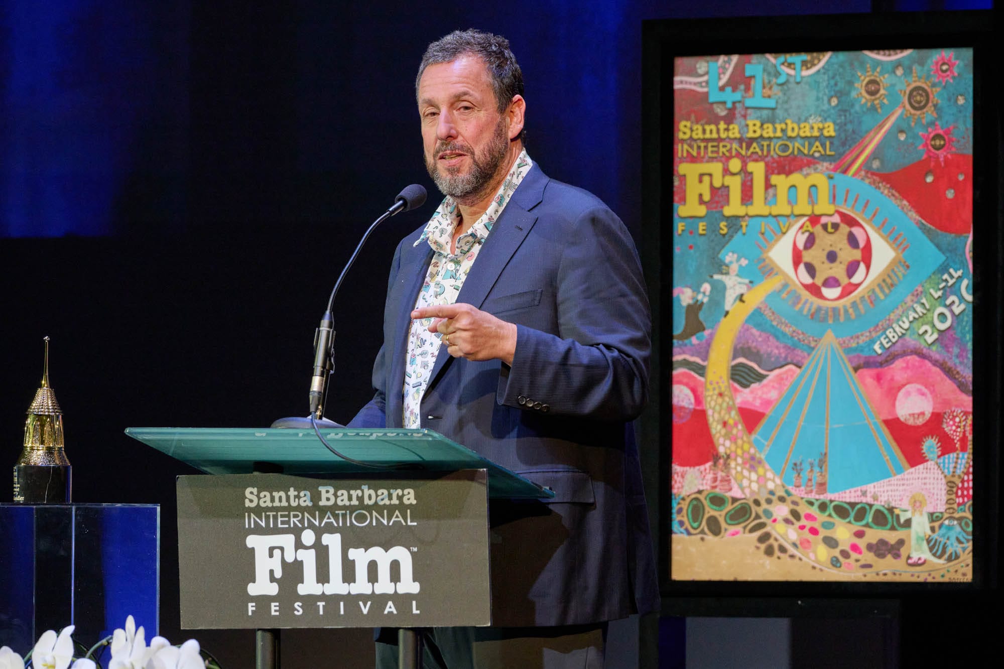 Adam Sandler was honored last night at the Santa Barbara Film Festival with the Maltin Modern Master Award, a sort of moot point since he did not get an Oscar nomination or a SAG nomination and he’s not really campaigning anymore and this kind of glad-handing event mostly exists to grease award season wheels.