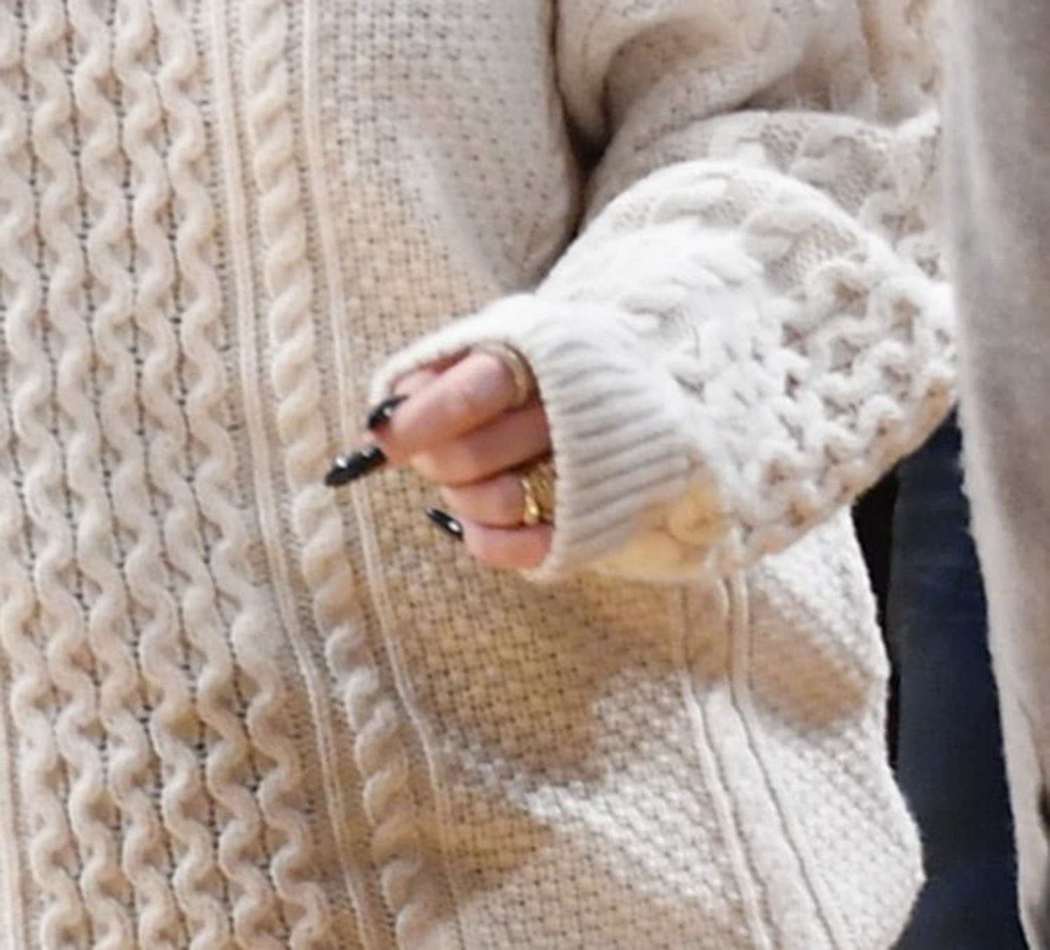 I’m not looking at the ring because I’m too busy admiring her sweater. Maria and I, for years, have been looking for the perfect white/cream sweater which started, unfortunately, with Gwyneth Paltrow … in 2011. It was Celine, and every white/cream sweater ever since had had to compare against that standard. I can’t say Adele’s equals GP’s, but it’s still very good. And what I like about it is that it’s a sweater that seems to move like a hoodie, with the perfect amount of slouch. I encourage you to harass Maria about finding it for the next edition of As Seen On Social Media.