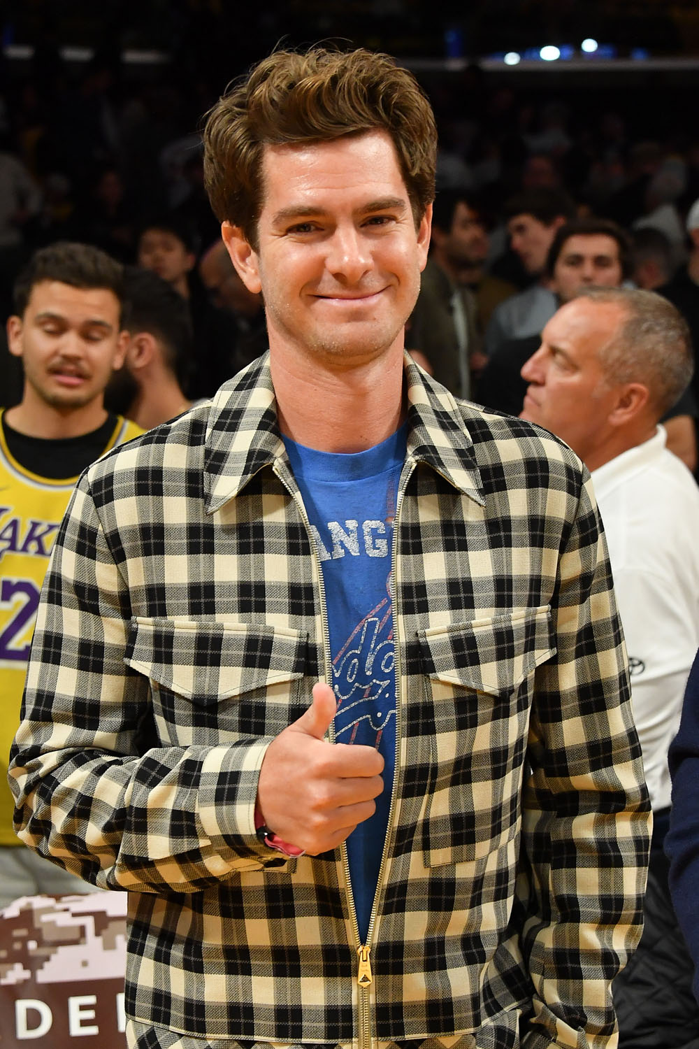 The other Brit at the Lakers game – Andrew Garfield who is, in my opinion, getting more and more attractive the older he gets. Do we give his hair enough credit? He has such good hair, whenever I see photos of him I always want to run my fingers through it to see how soft it is.