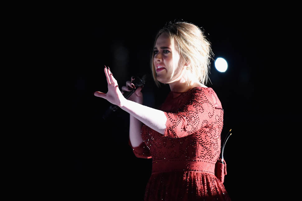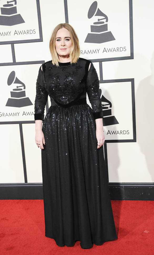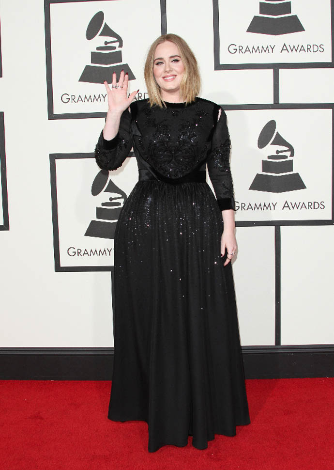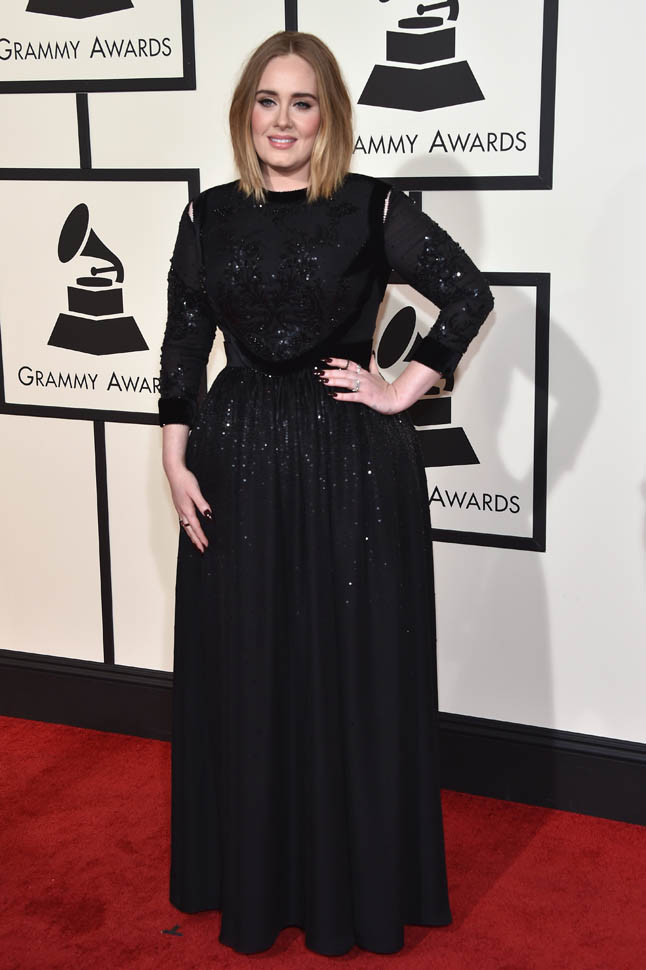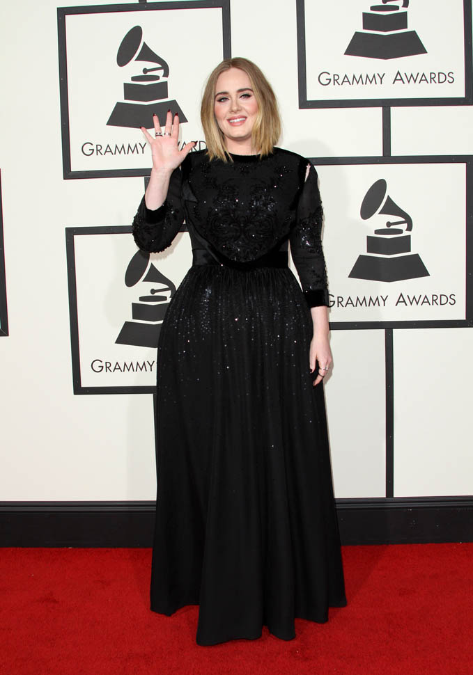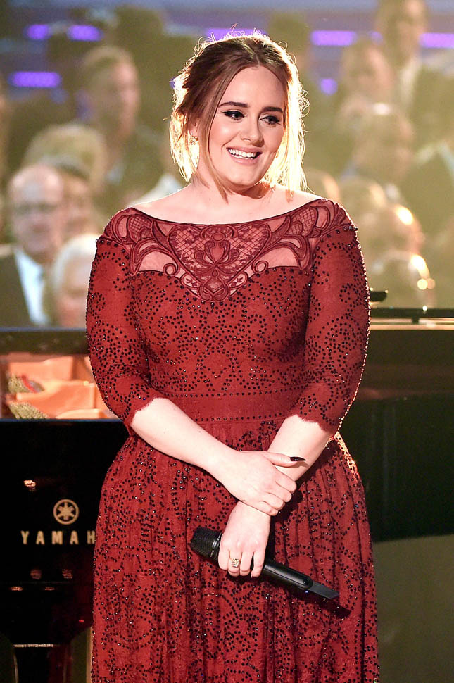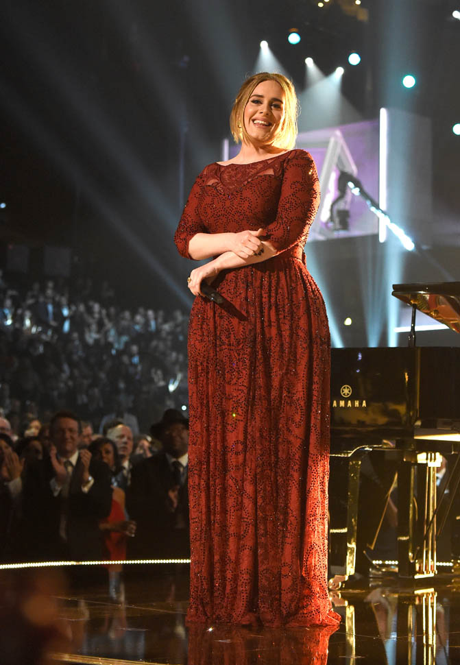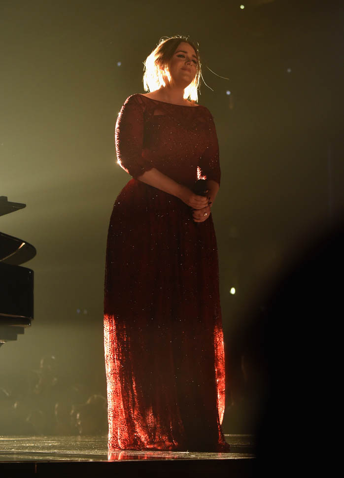 Producers of the Grammys confirmed last night that the problems with Adele’s audio were on their end. Apparently a mic got dropped when they were positioning the piano and when they tried to go to a backup feed, there was a sound delay. So, no, it’s not on her. But, really, it was on her. Because she’s the one who had to sing through it. Which is why she didn’t sound her best, not at all. And she knew it too. She looked crushed. She looked, at times, like she wanted to cry. I’m not a hugger, but even I would have given her one of my sh-tty hugs in that moment.