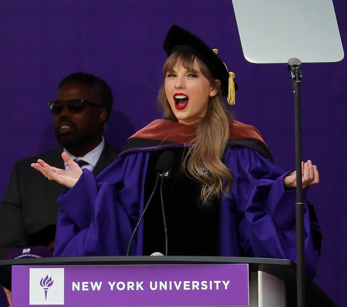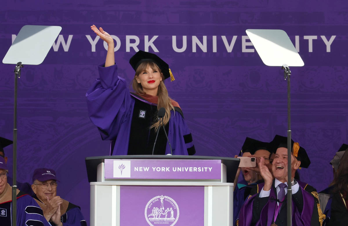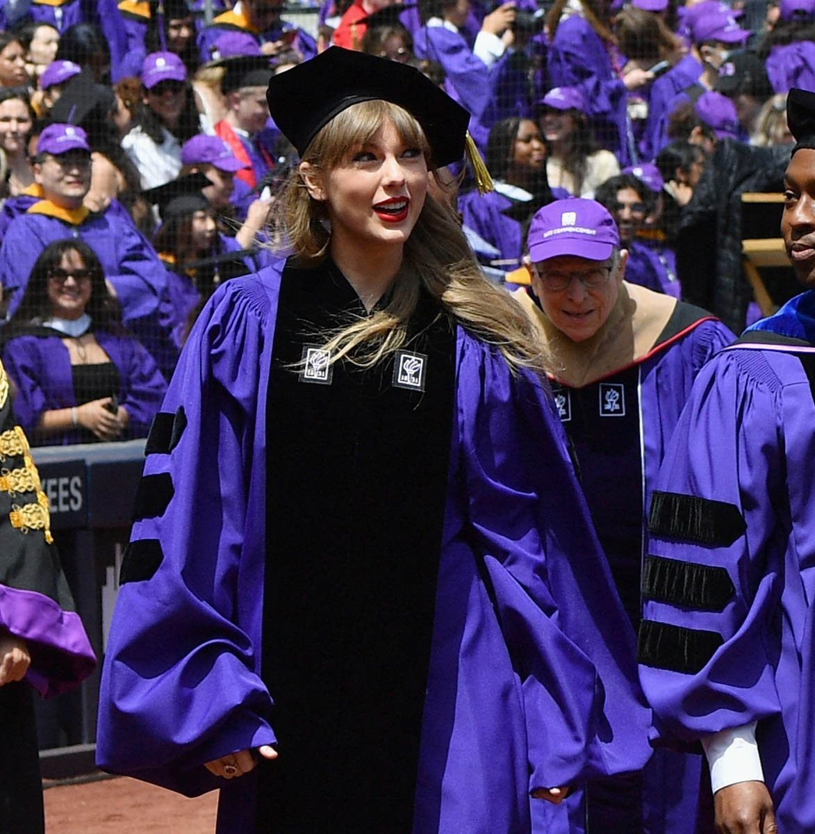 Full video of the NYU graduation event is below. Taylor enters the stadium at 2:13 and her speech starts at 2:47.