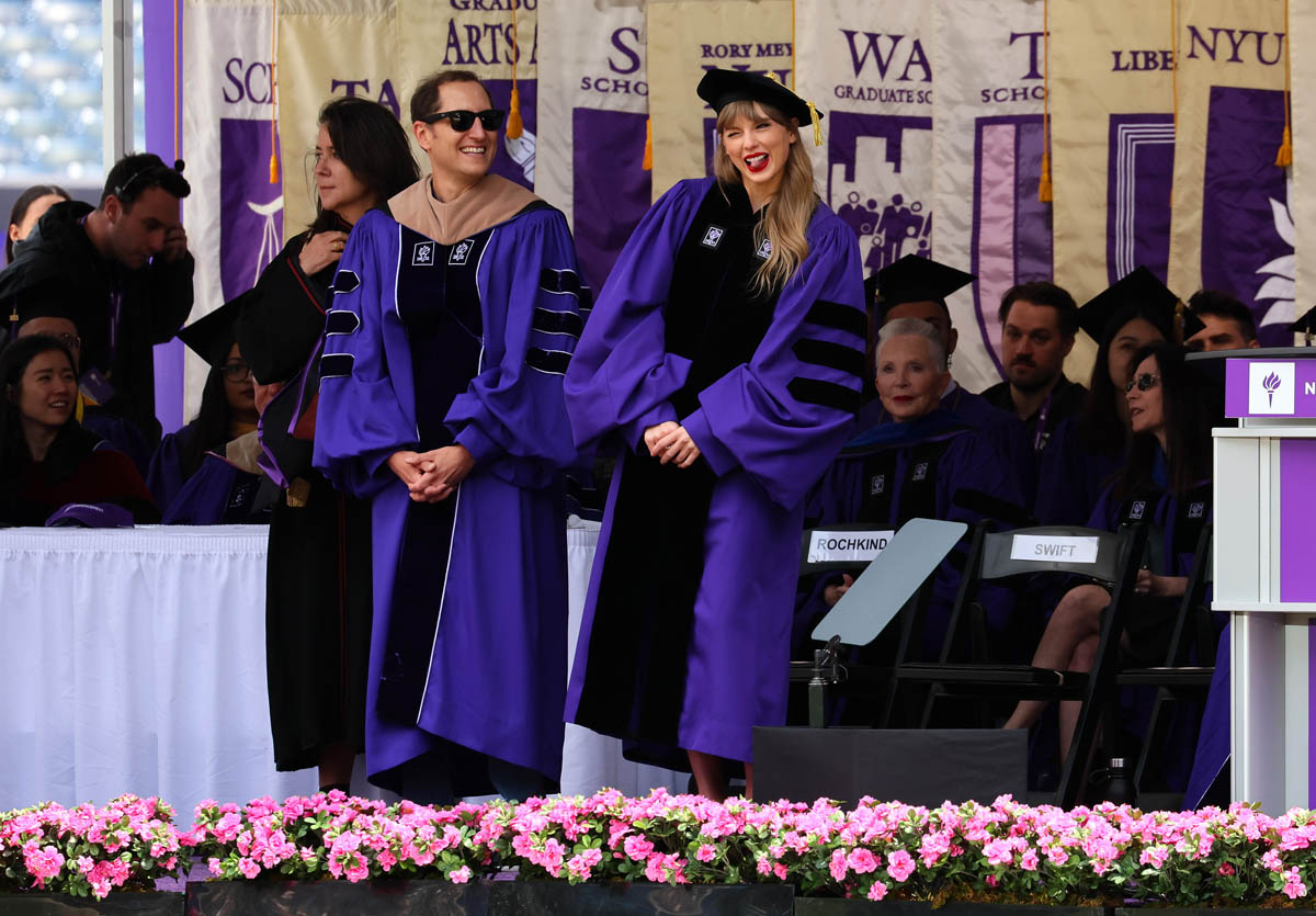 Taylor Swift fans were disappointed last week when May 13 came and went and there was no surprise album drop. Instead Taylor saved her first public appearance of 2022 for Yankee Stadium, where she appeared yesterday to receive an honorary doctorate in fine arts from New York University and deliver the commencement address. She shared a video on Instagram of her on the way to the ceremony and was adorably excited: