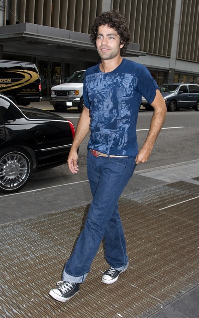 And here’s the thing that bothers me about Adrian Grenier, aesthetically speaking. It’s the way he walks. He walks without swinging his arms. He walks with his arms always straight by his side. It makes for an odd gait, non? A hot man is nothing without a good gait.