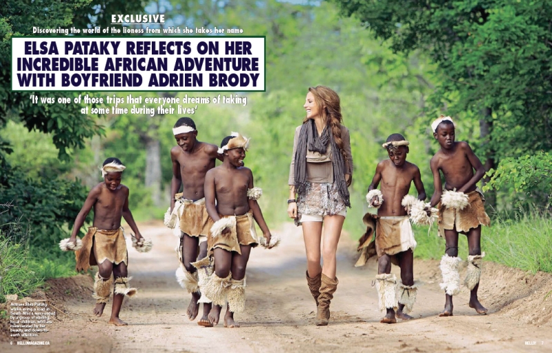 Actress Elsa Pataky walks along a road in South Africa surrounded by a group of smiling local children, who are mesmerized by her beauty and down-to earth affection.