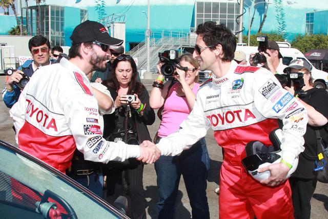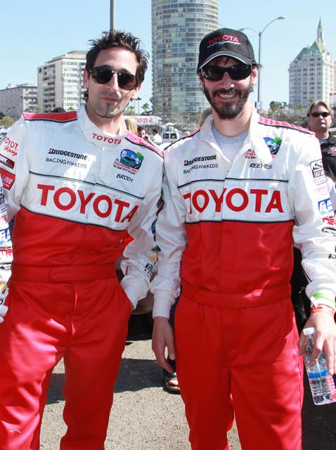 Adrien and Keanu Reeves were at the 2010 Toyota Pro Celebrity Race Press Day this afternoon along with Patrick Dempsey, Christian Slater, and Brian Austin Green, among others. As you can see, they were all photographed together and only Adrien seems like he’s trying to turn it into a Vogue editorial. One hand in the pocket, face angled just so, shoulder dipped, leg bent...