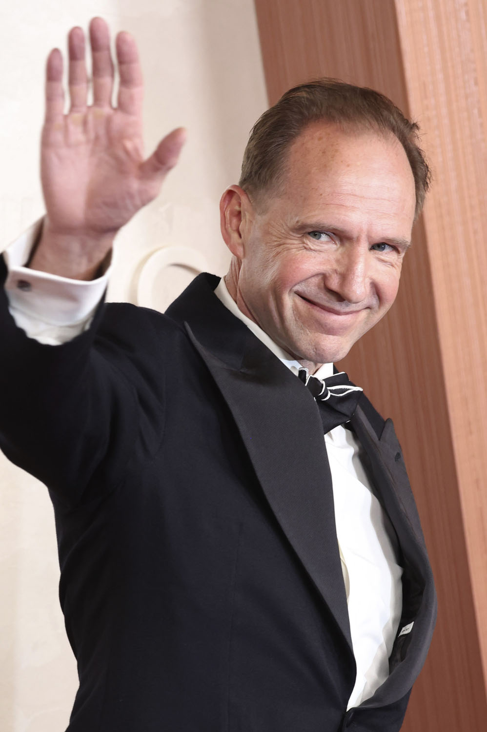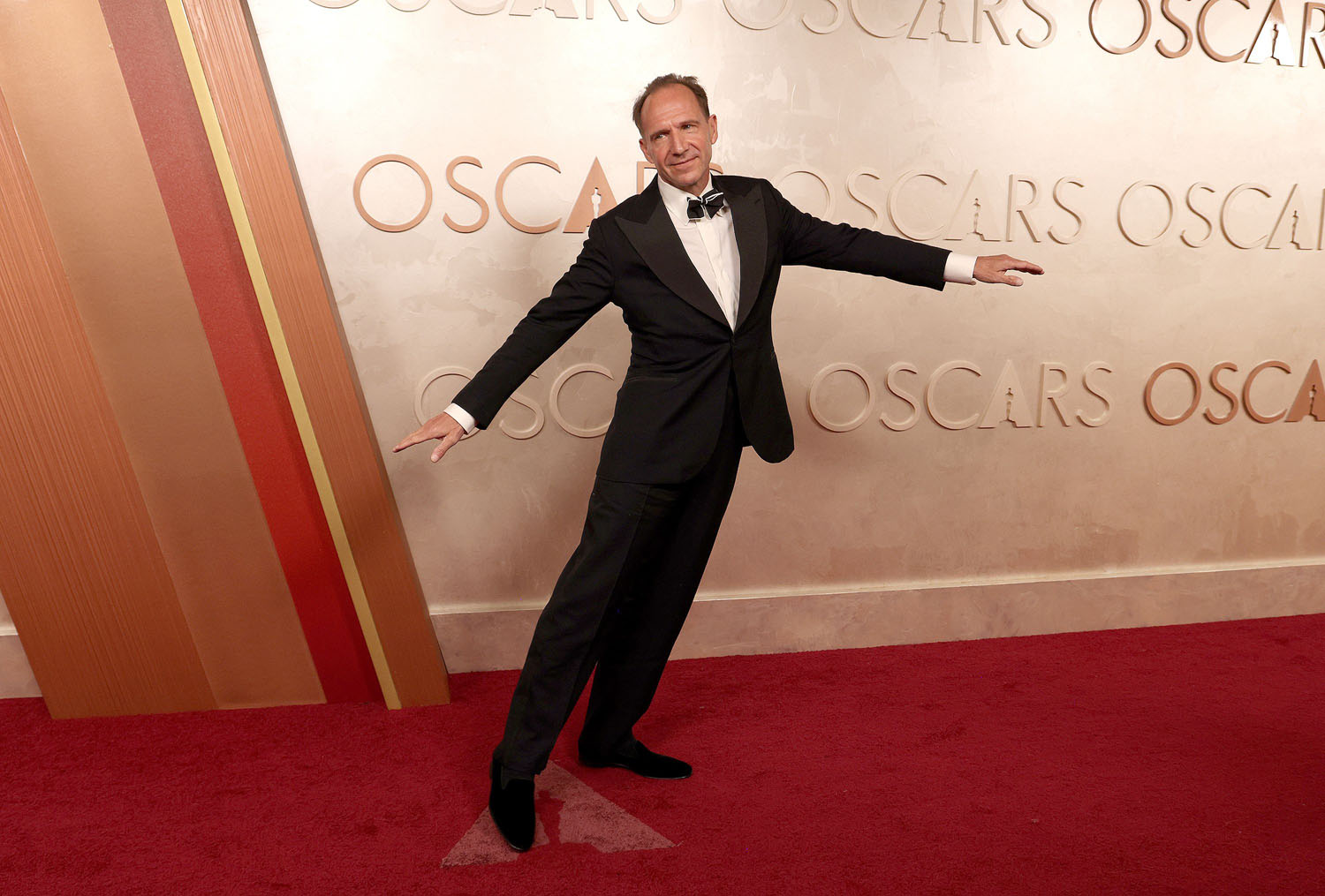 Ralph Fiennes showed up to the Oscars with his third nomination, having done virtually no campaigning, and worked the entire press line, for a LONG ass time, happily, even though it would benefit him not at all. I watched him laughing and joking and charming reporters from around the world. And posing like this… just for fun…