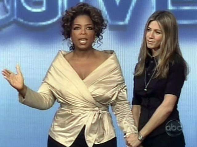 Sunday night, Oprah’s Big Give finale, Jennifer Aniston was the special guest. I didn’t watch but am told it was pure Oprah-style hysteria: MiniVan Majority members fainting in the aisles, people clapping until they cried and crying until they clapped. Jen apparently made some kind of announcement about all participants winning money and then talked the Mighty Opes into tripling the prize. Because all philanthropists need an incentive.