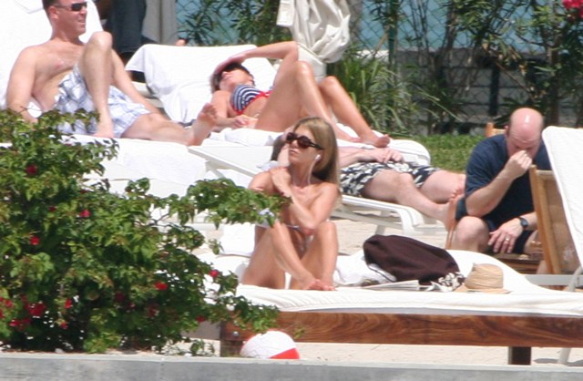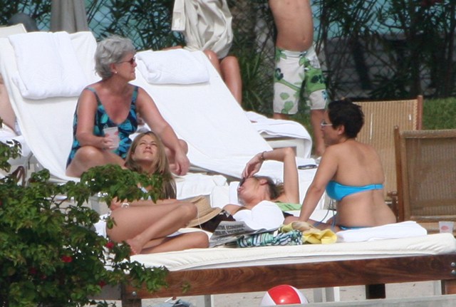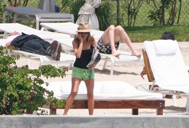 The show was pre-taped. This weekend Jen was back in Miami where she’s been shooting Marley & Me. So how do you think she spent her down time?