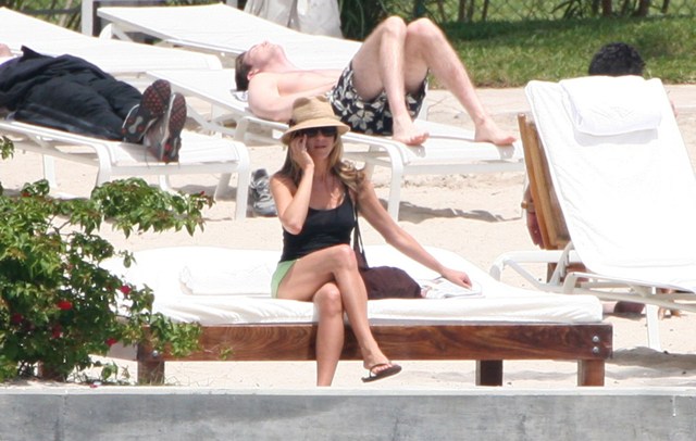 Well… at the beach. Of course! It’s totally her favourite thing. And why not? Her skin is always lovely, her hair is famously lovely, and with an ass like that, who wouldn’t want to show it off?