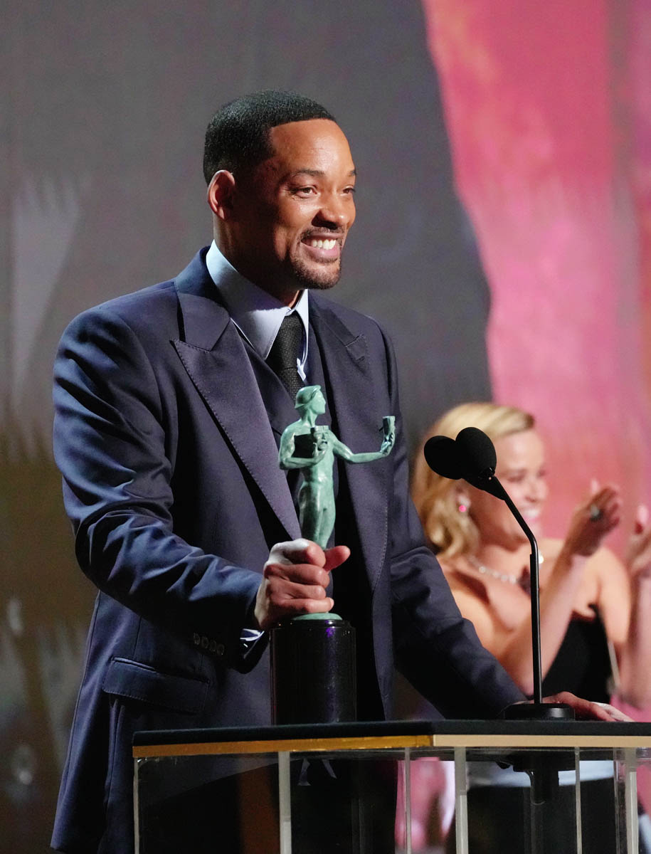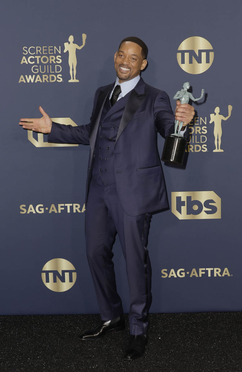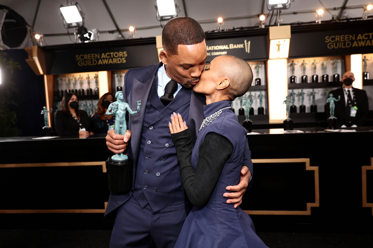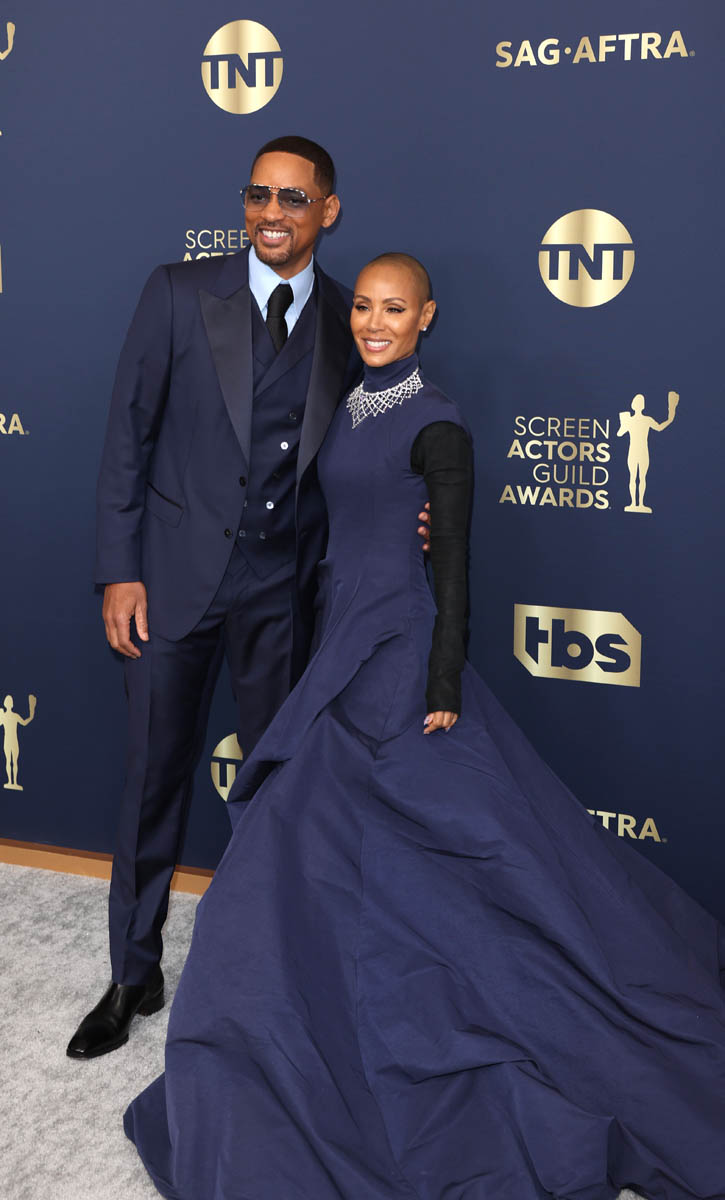 Smith attended the SAGs with Jada, obviously, and they came like an old-school power couple, with matchy-matchy outfits and Jada rocking MAJOR jewelry. The united front of their coordinated outfits did not stop red carpet host Laverne Cox from bringing up “entanglements” to their faces which is like…