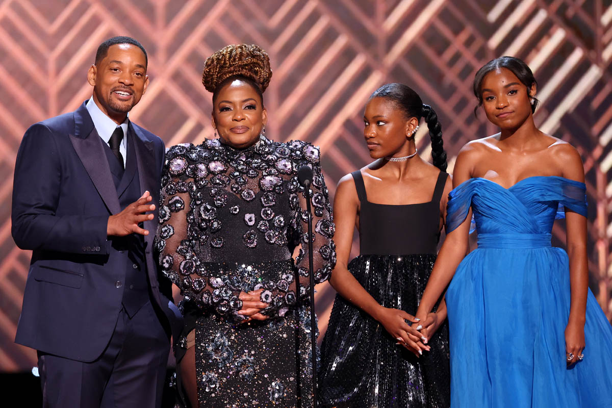 Slip of the tongue, or honest to goddess gutsy callout? Either way, iconic is right. Who else would dare to say anything to even POSSIBLY derail the messaging of the night, especially since King Richard is positioned as a family-friendly film, and the Smiths’ relationship is, at times, not so traditional.