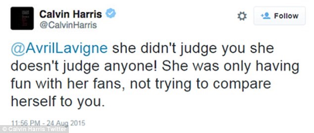 Does she love him because he keeps getting into fights on Twitter for her? This time it’s about Avril and that situation on Tumblr after Taylor liked a post that compared how affectionate she is with her fans and how seemingly distant Avril is with hers.